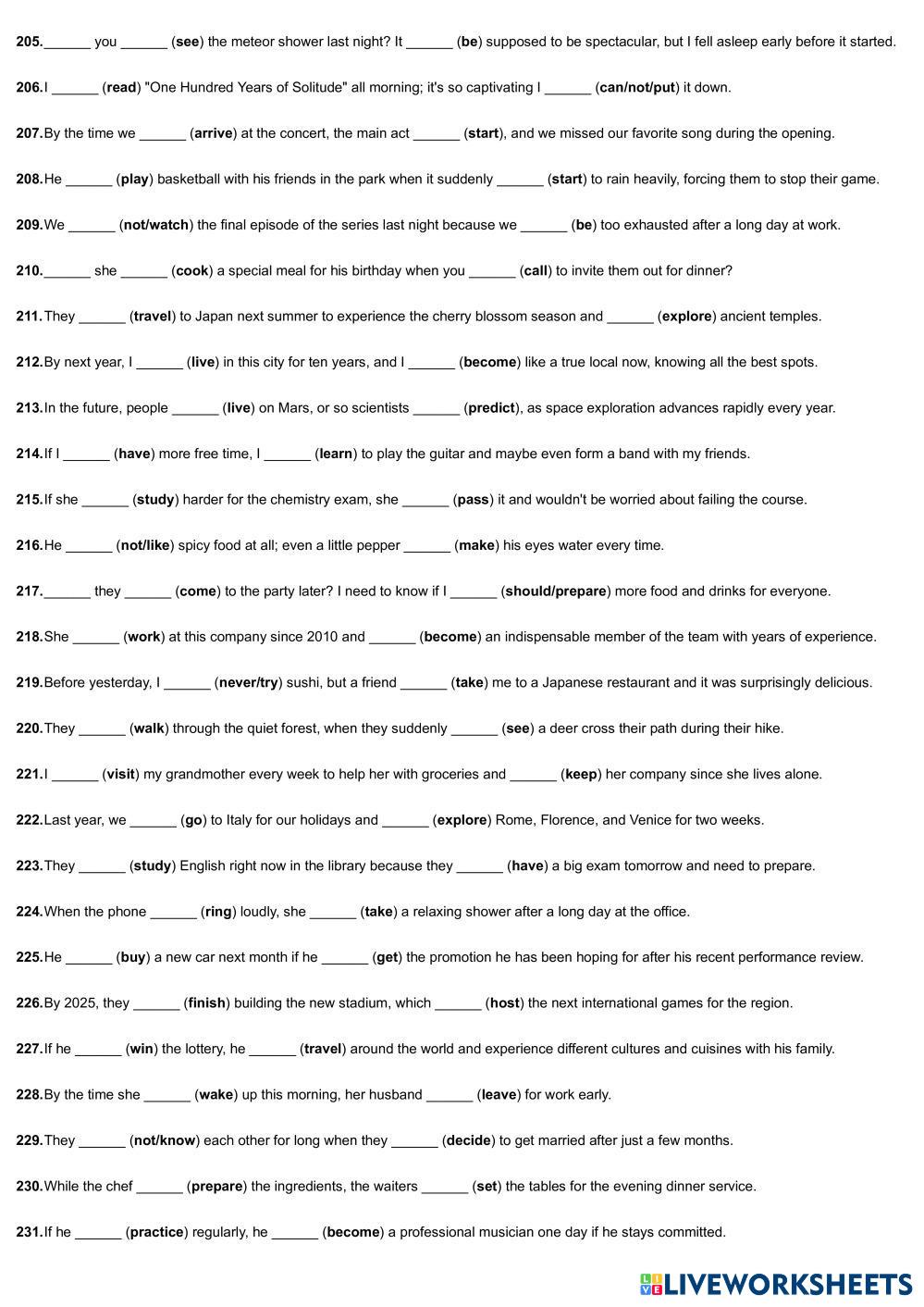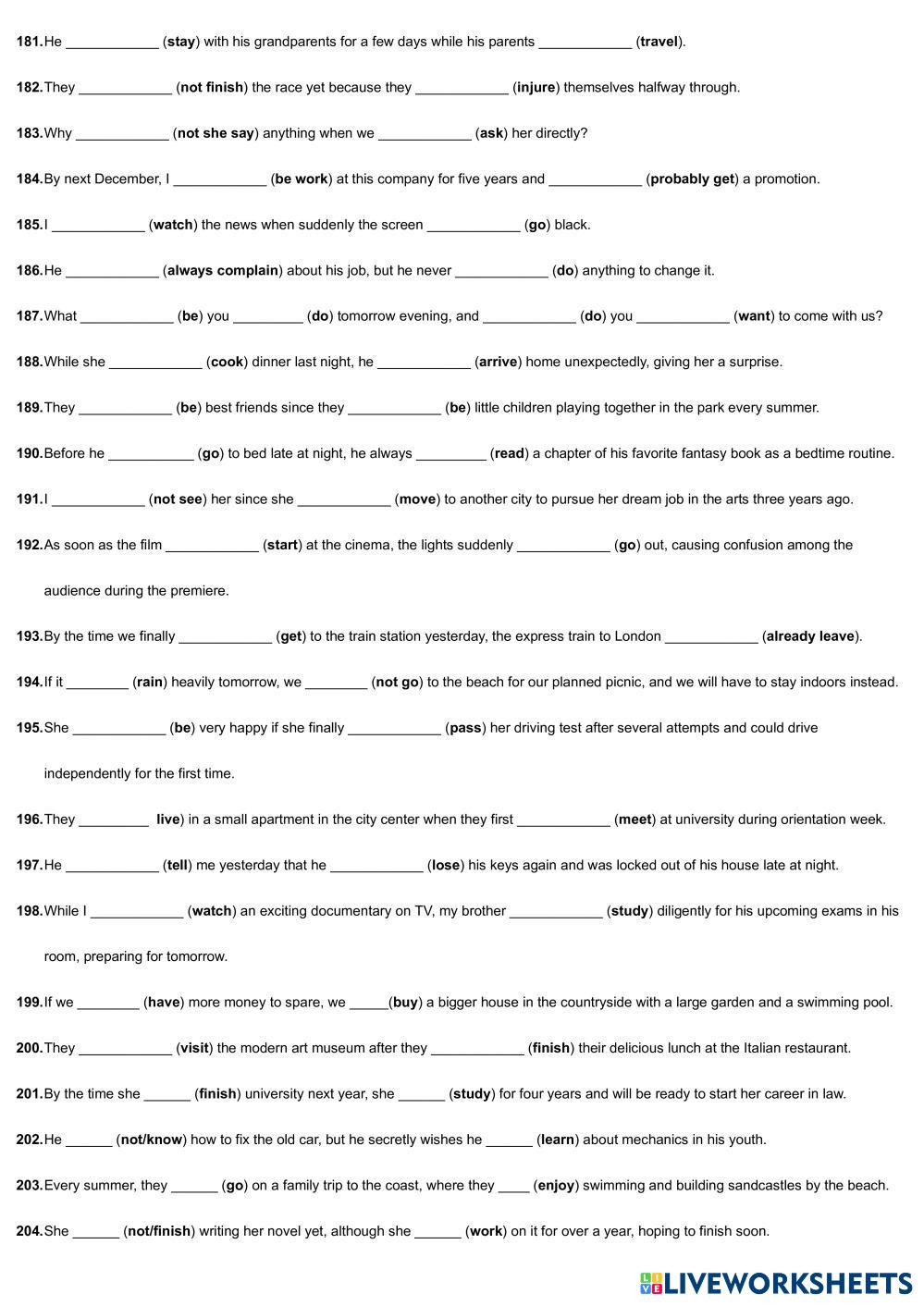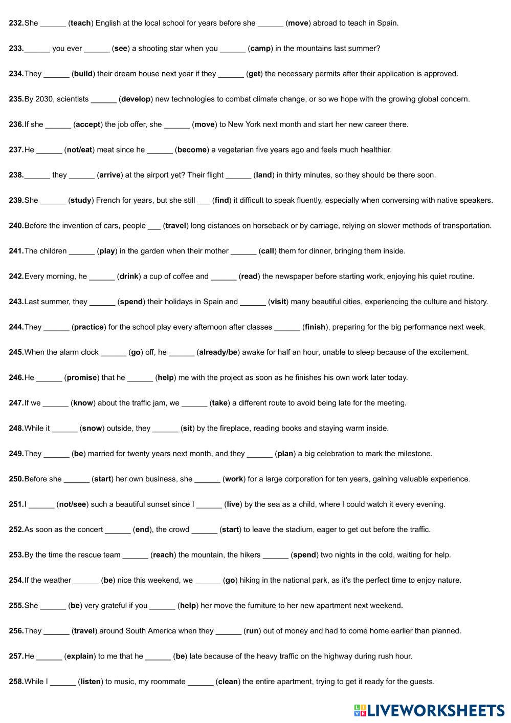 Created by marcosprezlvarez English Language High School 12th grade Writing English Author's Instructions fill the gaps My Google Classroom Courses × 0 classes selected (0 students total) Quick Access Select all classes (0 classes) All Classes Loading courses... Cancel Share Share to selected Course __COURSE_NAME__ __STUDENT_NAME__ (__STUDENT_EMAIL__) All Tenses Download Worksheet Validation Check my answers Emails my answers to my teacher Full name Group/level School subject Teacher's email or key code Close Submit Validating worksheet... (12) Your answers have been sent to your teacher. Good luck! OK We encountered an error submitting your answers. Please try again. OK Advertisement | Go Ad Free Created by marcosprezlvarez English Language High School 12th grade Writing English Author's Instructions fill the gaps Explore Worksheets Conditionals I English Language 12th grade Conditionals I Writing - English Language Complete with conditional ADVANTAGE AND DISADVANTGE ESSAY English Language 12th grade ADVANTAGE AND DISADVANTGE ESSAY Writing - English Language Writing practice Postcard from New York English Language 12th grade Postcard from New York Writing - English Language Complete the exercise. A postcard from New York English Language 12th grade A postcard from New York Writing - English Language https://learnenglishteens.britishcouncil.org/sites/teens/files/a_postcard_from_new_york_-_exercises_4.pdf