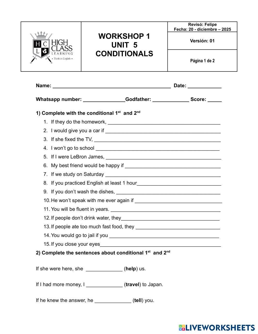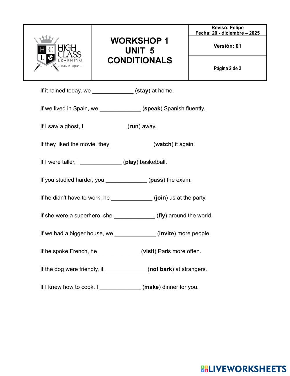 COMPLETE WITH THE CORRECT CONDITIONALS