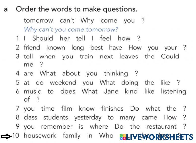 Unscramble the words to make the questions