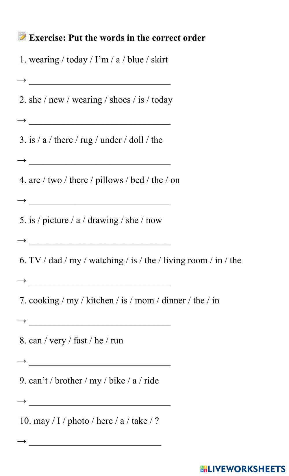 Created byPhan Ngọc Bích Vân English Language Elementary 3rd grade Writing English Author's Instructions FA3 U11L4 (T7 28-03) My Google Classroom Courses × 0 classes selected (0 students total) Quick Access Select all classes (0 classes) All Classes Loading courses... Cancel Share Share to selected Course __COURSE_NAME__ __STUDENT_NAME__ (__STUDENT_EMAIL__) FA3 U11L4 (T7 28-03) Download Worksheet Validation Check my answers Emails my answers to my teacher Full name Group/level School subject Teacher's email or key code Close Submit Validating worksheet... (12) Your answers have been sent to your teacher. Good luck! OK We encountered an error submitting your answers. Please try again. OK Advertisement | Go Ad Free Created byPhan Ngọc Bích Vân English Language Elementary 3rd grade Writing English Author's Instructions FA3 U11L4 (T7 28-03) Explore Worksheets Ejercicio English Language 3rd grade Ejercicio Writing - English Language Selecciona la herramienta Dropdown. Dibuja un cuadro sobre el espacio donde irá la respuesta. Escribe las opciones separadas por comas: hierba, hierva, echo, hecho Marca cuál es la correcta. Cuando la leche (hierva) echa el azúcar. Pepe ya ha hecho las tareas de clase. Selecciona Short answer (respuesta corta) o Long answer (respuesta larga). Dibuja el cuadro donde el alumno escribirá. Si quieres que el profesor corrija manualmente, marca Teacher will check. Level_3_Unit_6 English Language 3rd grade Level_3_Unit_6 Writing - English Language Level_3_Unit_6_Test FA3 U11L3 (T6 27-03) English Language 3rd grade FA3 U11L3 (T6 27-03) Writing - English Language FA3 U11L3 (T6 27-03) Los articulos English Language 3rd grade Los articulos Writing - English Language Realizar las siguientes actividades basadas en la tematica del articulo.