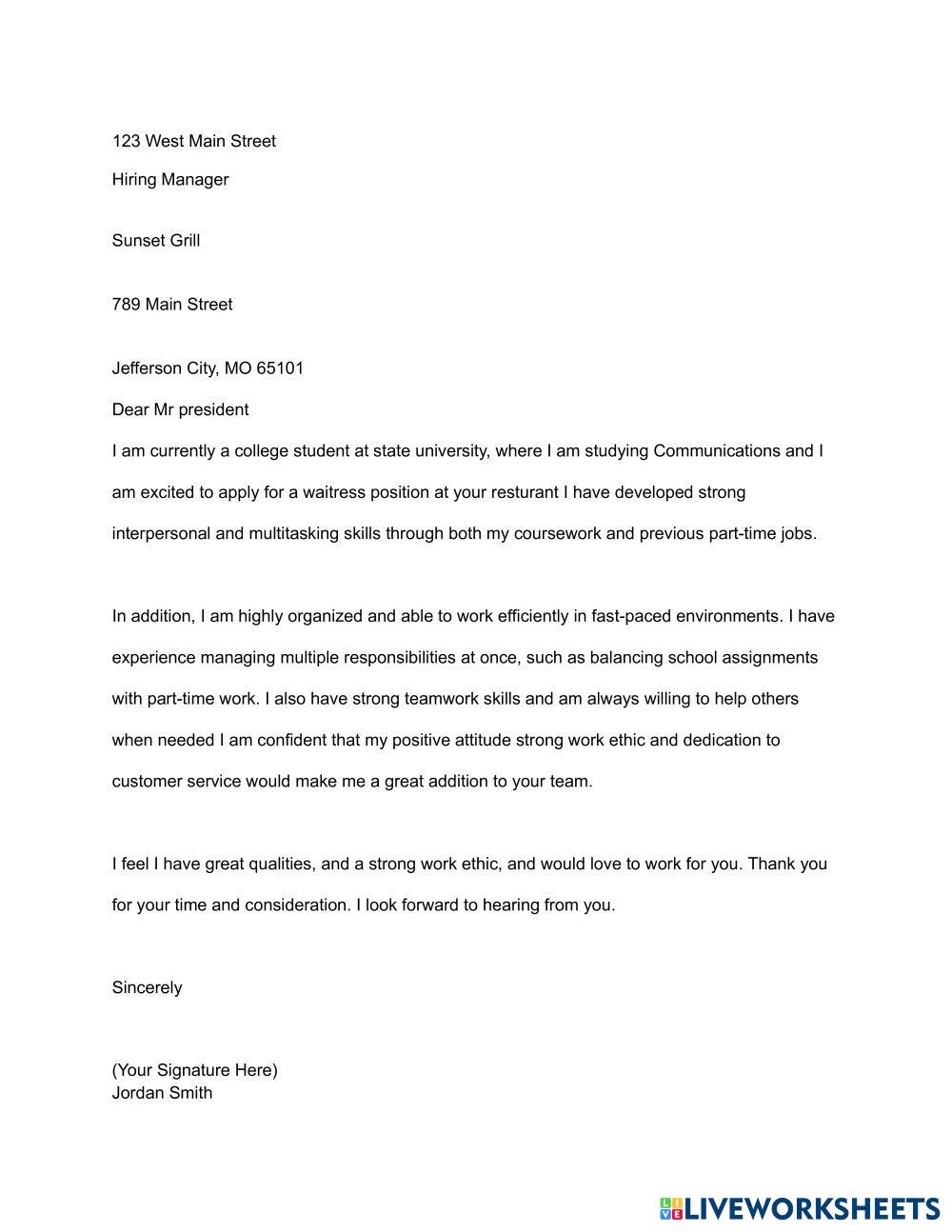 There are 10 errors in this business letter. Look at each line. If there is an error in that line, you will need to retype the line, and correct all the errors. Highlight the corrections you made.