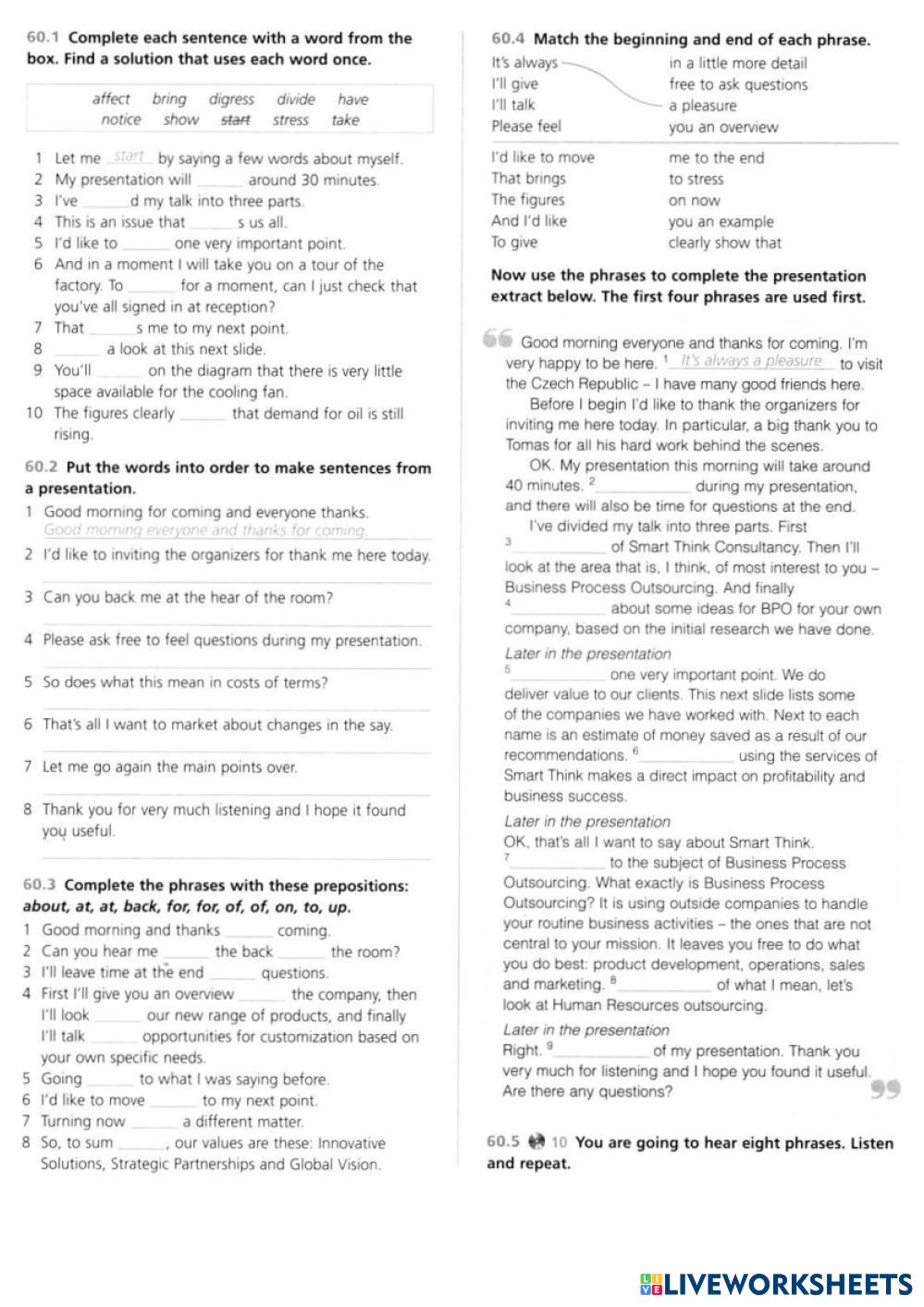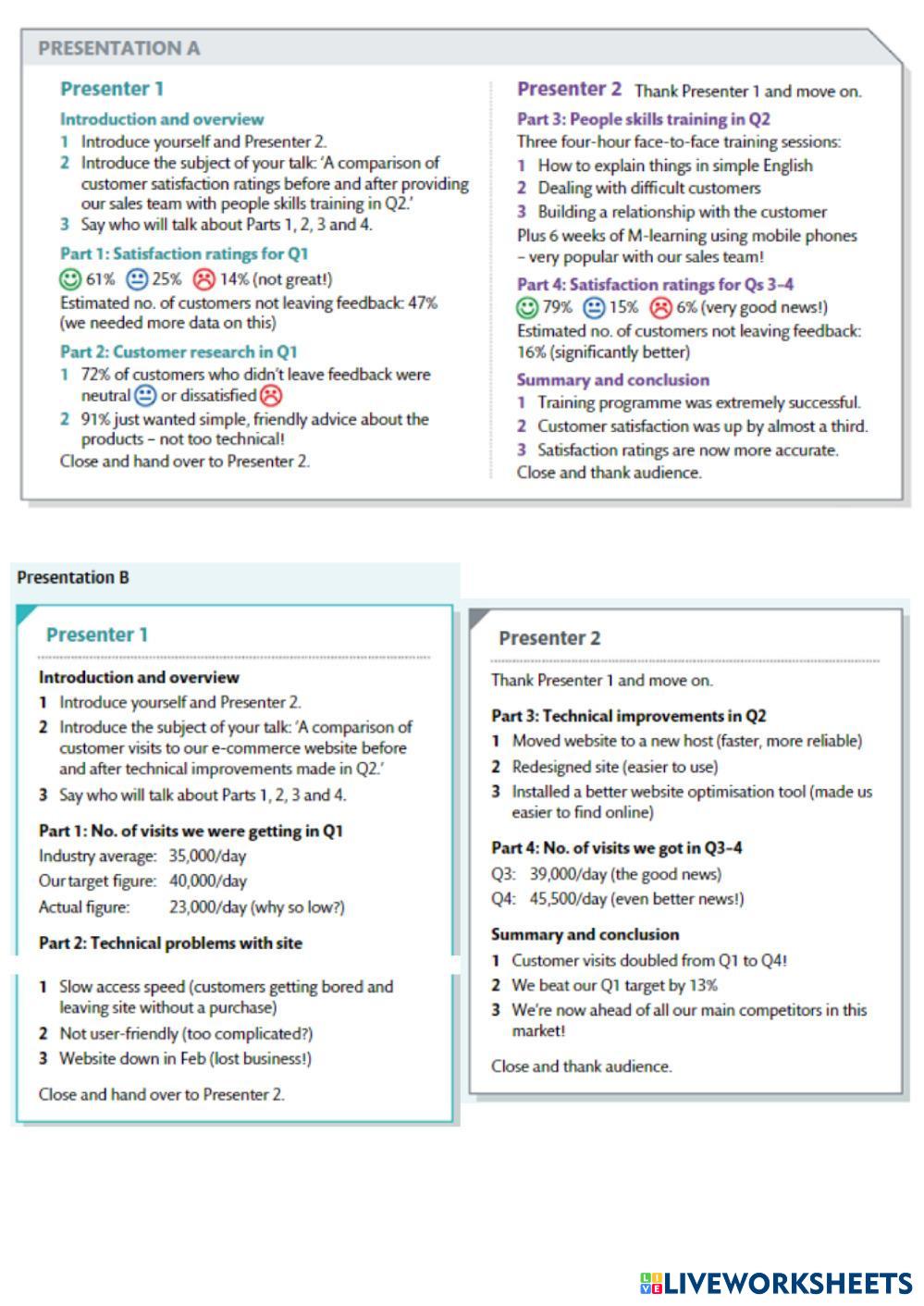 Created by annetavalinova English language Presenting Results/presentations Age 18-16 level: a2+ English Author's Instructions Presenting Results/presentations My Google Classroom Courses × 0 classes selected (0 students total) Quick Access Select all classes (0 classes) All Classes Loading courses... Cancel Share Share to selected Course __COURSE_NAME__ __STUDENT_NAME__ (__STUDENT_EMAIL__) Presenting Results Download Worksheet Validation Check my answers Emails my answers to my teacher Full name Group/level School subject Teacher's email or key code Close Submit Validating worksheet... (12) Your answers have been sent to your teacher. Good luck! OK We encountered an error submitting your answers. Please try again. OK Advertisement | Go Ad Free Created by annetavalinova English language Presenting Results/presentations Age 18-16 level: a2+ English Author's Instructions Presenting Results/presentations