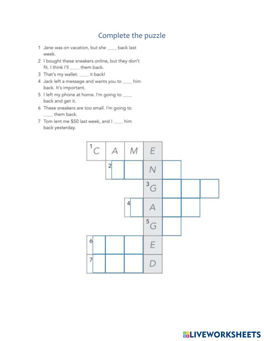 Created byMaría Eugenia English language Grammar Age 18+ level: B1 English Author's Instructions My Google Classroom Courses × 0 classes selected (0 students total) Quick Access Select all classes (0 classes) All Classes Loading courses... Cancel Share Share to selected Course __COURSE_NAME__ __STUDENT_NAME__ (__STUDENT_EMAIL__) verb + BACK Download Worksheet Validation Check my answers Emails my answers to my teacher Full name Group/level School subject Teacher's email or key code Close Submit Validating worksheet... (12) Your answers have been sent to your teacher. Good luck! OK We encountered an error submitting your answers. Please try again. OK Advertisement | Go Ad Free Created byMaría Eugenia English language Grammar Age 18+ level: B1 English Author's Instructions