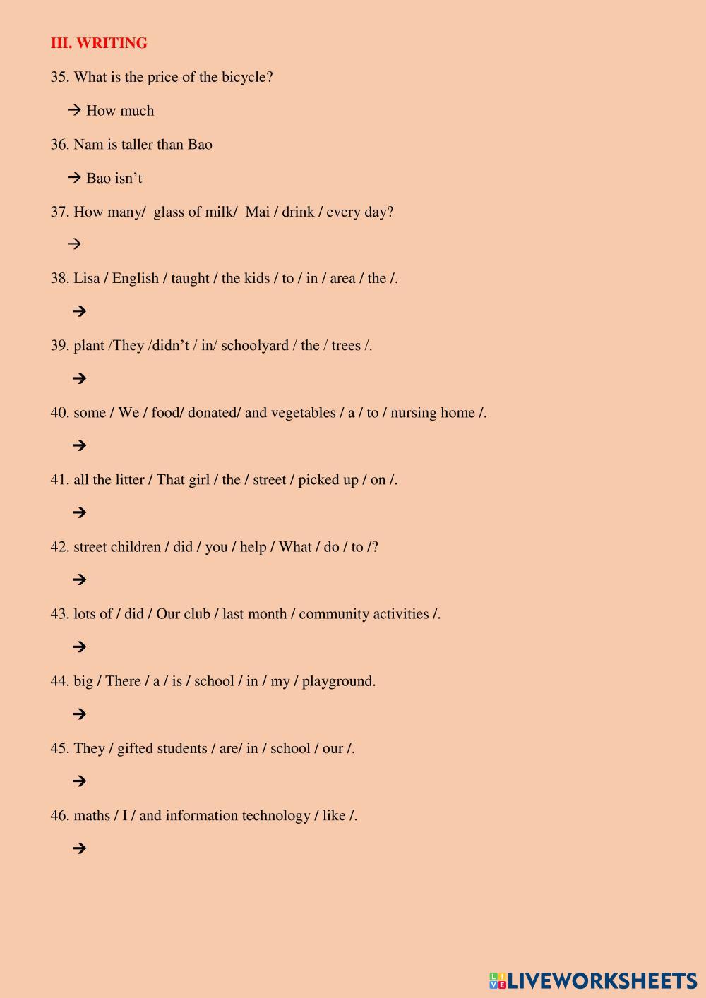 Created by MrHuy English language REVIEW FOR THE FIRST SEMESTER TEST ENGLISH 7_23-24 Age 12-16 level: 7 English Author's Instructions My Google Classroom Courses × 0 classes selected (0 students total) Quick Access Select all classes (0 classes) All Classes Loading courses... Cancel Share Share to selected Course __COURSE_NAME__ __STUDENT_NAME__ (__STUDENT_EMAIL__) REVIEW FOR THE FIRST SEMESTER TEST ENGLISH 7_23-24 (1) Download Worksheet Validation Check my answers Emails my answers to my teacher Full name Group/level School subject Teacher's email or key code Close Submit Validating worksheet... (12) Your answers have been sent to your teacher. Good luck! OK We encountered an error submitting your answers. Please try again. OK Advertisement | Go Ad Free Created by MrHuy English language REVIEW FOR THE FIRST SEMESTER TEST ENGLISH 7_23-24 Age 12-16 level: 7 English Author's Instructions
