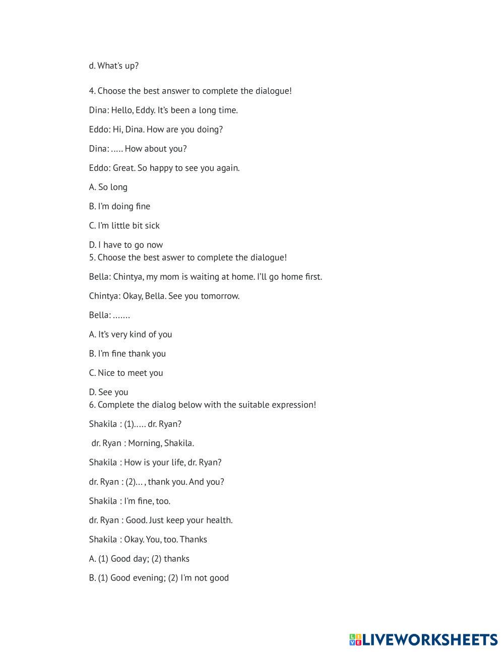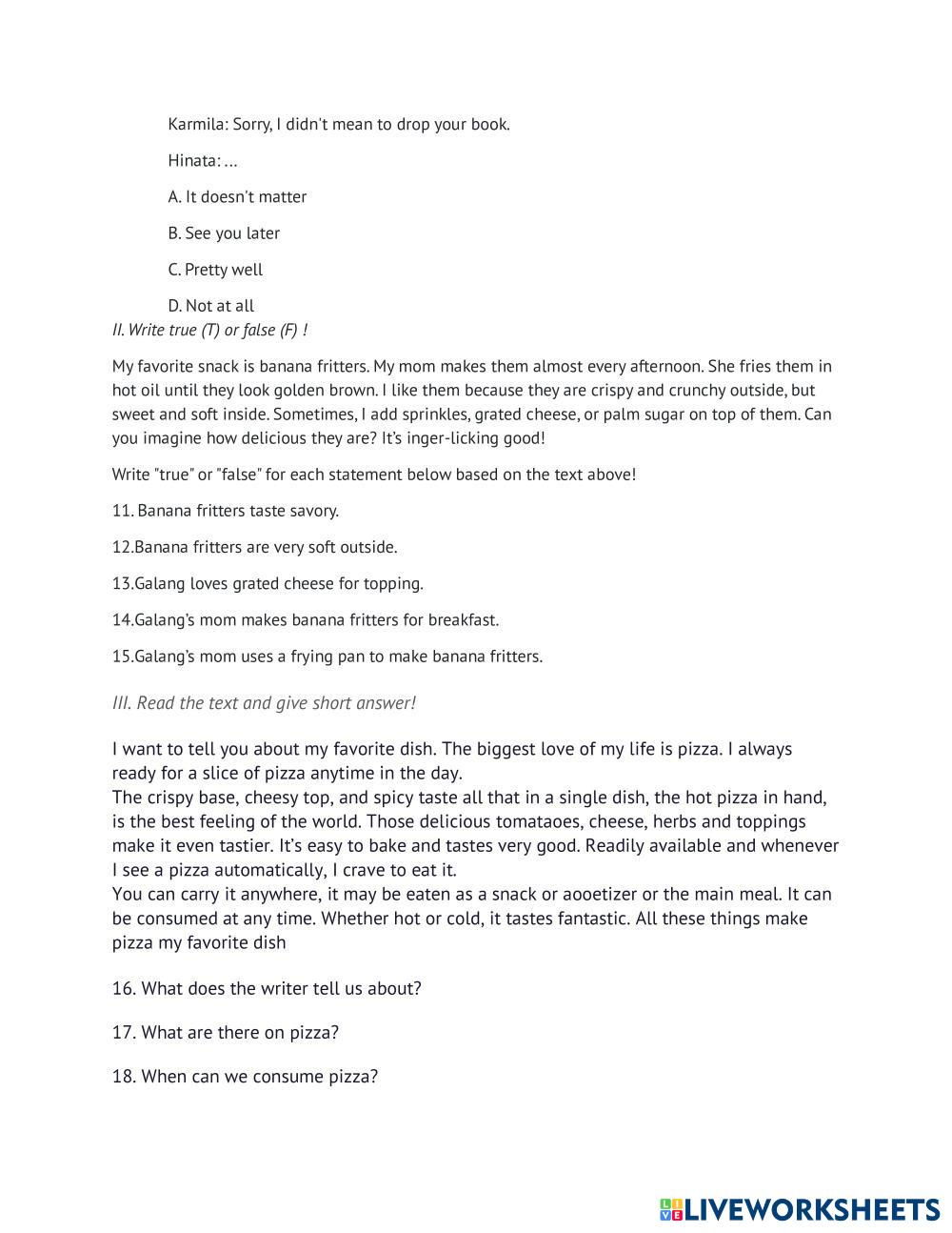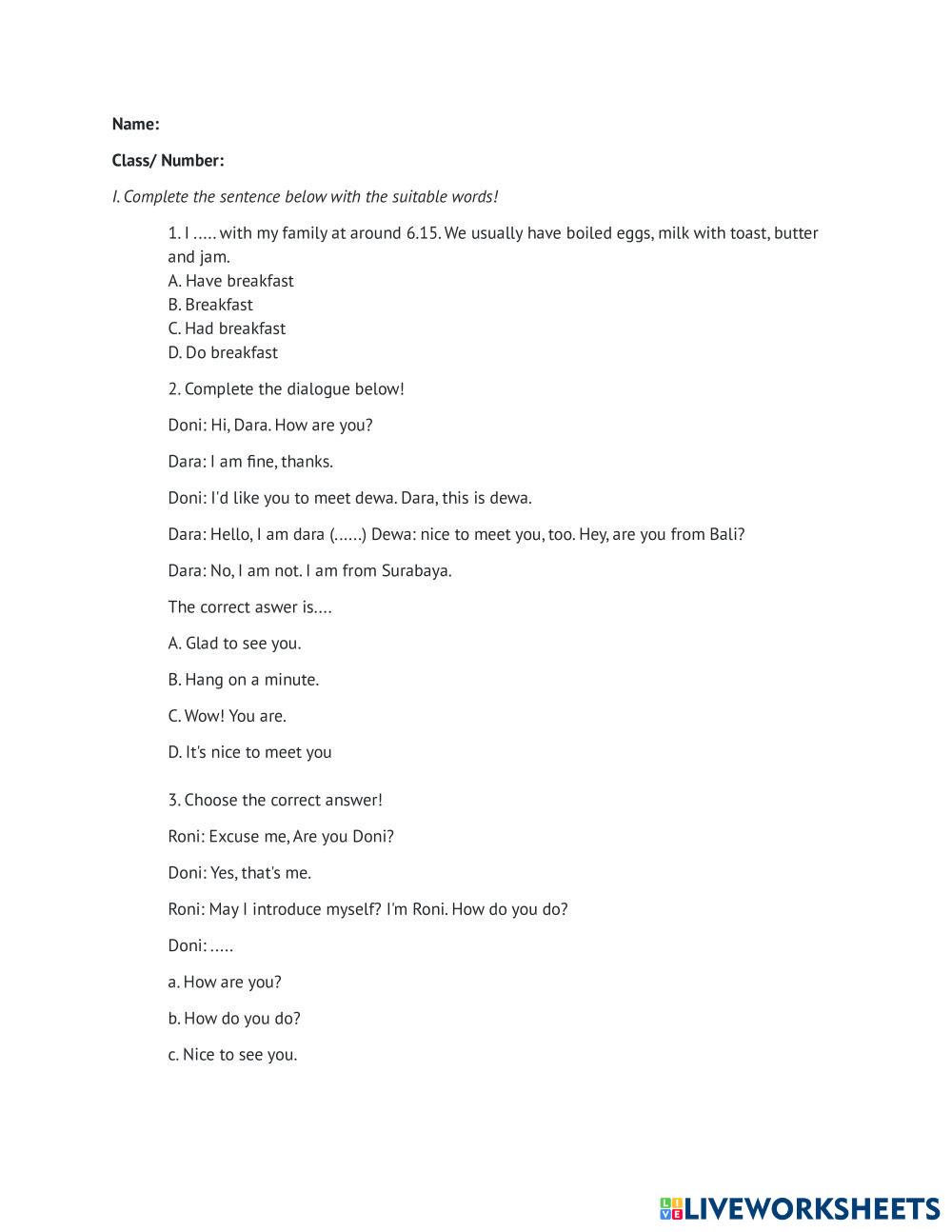 Created byHanis Safitri English language English Age 13-18 level: 7 grade English Author's Instructions My Google Classroom Courses × 0 classes selected (0 students total) Quick Access Select all classes (0 classes) All Classes Loading courses... Cancel Share Share to selected Course __COURSE_NAME__ __STUDENT_NAME__ (__STUDENT_EMAIL__) Practice smt 1 Download Worksheet Validation Check my answers Emails my answers to my teacher Full name Group/level School subject Teacher's email or key code Close Submit Validating worksheet... (12) Your answers have been sent to your teacher. Good luck! OK We encountered an error submitting your answers. Please try again. OK Advertisement | Go Ad Free Created byHanis Safitri English language English Age 13-18 level: 7 grade English Author's Instructions