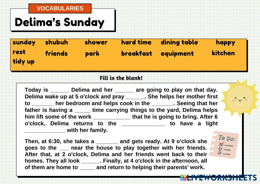 Created byLina Nurhalimatussya'diah English language Reading and vocabulary Age 10-12 level: 4th Grade English Author's Instructions My Google Classroom Courses × 0 classes selected (0 students total) Quick Access Select all classes (0 classes) All Classes Loading courses... Cancel Share Share to selected Course __COURSE_NAME__ __STUDENT_NAME__ (__STUDENT_EMAIL__) English for 4th Grade of Elementary School Students Download Worksheet Validation Check my answers Emails my answers to my teacher Full name Group/level School subject Teacher's email or key code Close Submit Validating worksheet... (12) Your answers have been sent to your teacher. Good luck! OK We encountered an error submitting your answers. Please try again. OK Advertisement | Go Ad Free Created byLina Nurhalimatussya'diah English language Reading and vocabulary Age 10-12 level: 4th Grade English Author's Instructions