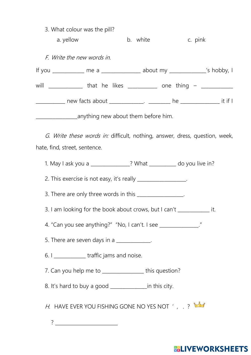 Created by TatyanaL English language New words Age 10-16 level: Intermidiate English Author's Instructions My Google Classroom Courses × 0 classes selected (0 students total) Quick Access Select all classes (0 classes) All Classes Loading courses... Cancel Share Share to selected Course __COURSE_NAME__ __STUDENT_NAME__ (__STUDENT_EMAIL__) Analyse Test 9 Download Worksheet Validation Check my answers Emails my answers to my teacher Full name Group/level School subject Teacher's email or key code Close Submit Validating worksheet... (12) Your answers have been sent to your teacher. Good luck! OK We encountered an error submitting your answers. Please try again. OK Advertisement | Go Ad Free Created by TatyanaL English language New words Age 10-16 level: Intermidiate English Author's Instructions