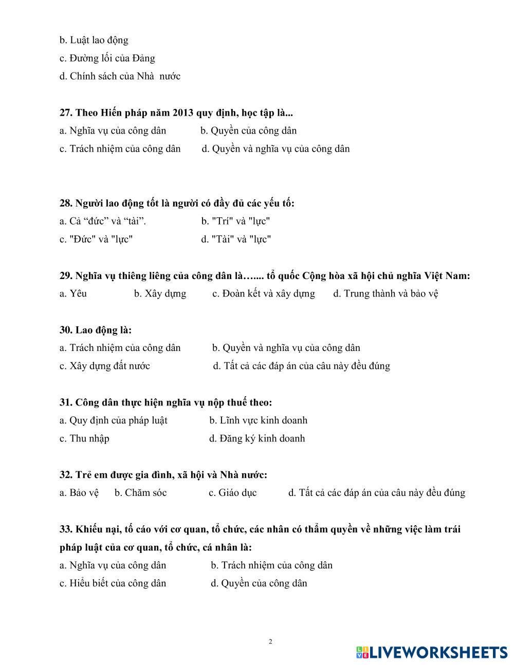 Created byDO THI THOM English language Grammar Age 10+ level: 9 English Author's Instructions My Google Classroom Courses × 0 classes selected (0 students total) Quick Access Select all classes (0 classes) All Classes Loading courses... Cancel Share Share to selected Course __COURSE_NAME__ __STUDENT_NAME__ (__STUDENT_EMAIL__) Bài 5.2 GIÁO DỤC CHÍNH TRỊ - TRUNG CẤP Download Worksheet Validation Check my answers Emails my answers to my teacher Full name Group/level School subject Teacher's email or key code Close Submit Validating worksheet... (12) Your answers have been sent to your teacher. Good luck! OK We encountered an error submitting your answers. Please try again. OK Advertisement | Go Ad Free Created byDO THI THOM English language Grammar Age 10+ level: 9 English Author's Instructions
