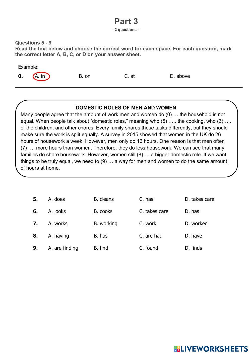 Created byTA Day Kem - B1 English language Grammar Age 10+ level: 9 English Author's Instructions My Google Classroom Courses × 0 classes selected (0 students total) Quick Access Select all classes (0 classes) All Classes Loading courses... Cancel Share Share to selected Course __COURSE_NAME__ __STUDENT_NAME__ (__STUDENT_EMAIL__) SW09Theme10-R&W Download Worksheet Validation Check my answers Emails my answers to my teacher Full name Group/level School subject Teacher's email or key code Close Submit Validating worksheet... (12) Your answers have been sent to your teacher. Good luck! OK We encountered an error submitting your answers. Please try again. OK Advertisement | Go Ad Free Created byTA Day Kem - B1 English language Grammar Age 10+ level: 9 English Author's Instructions