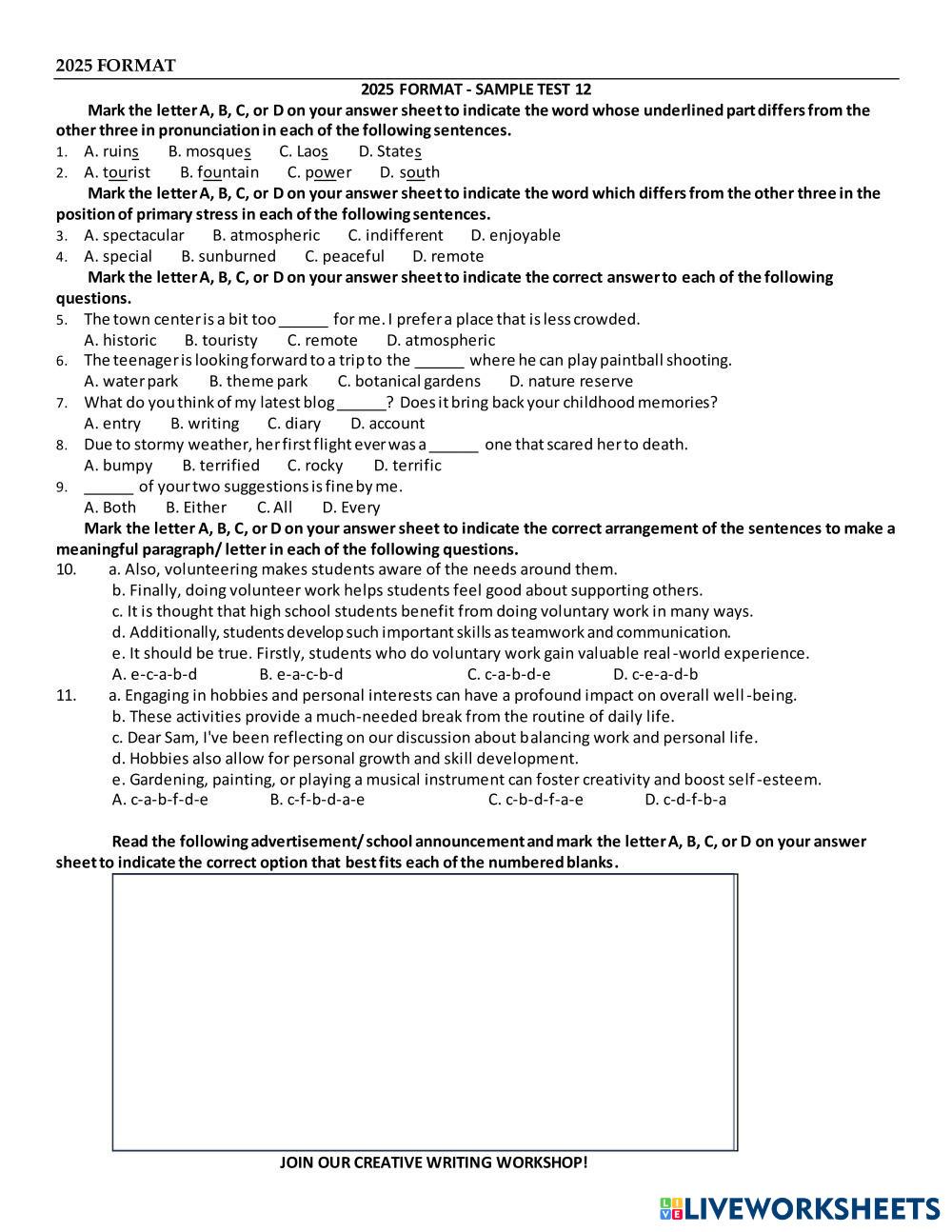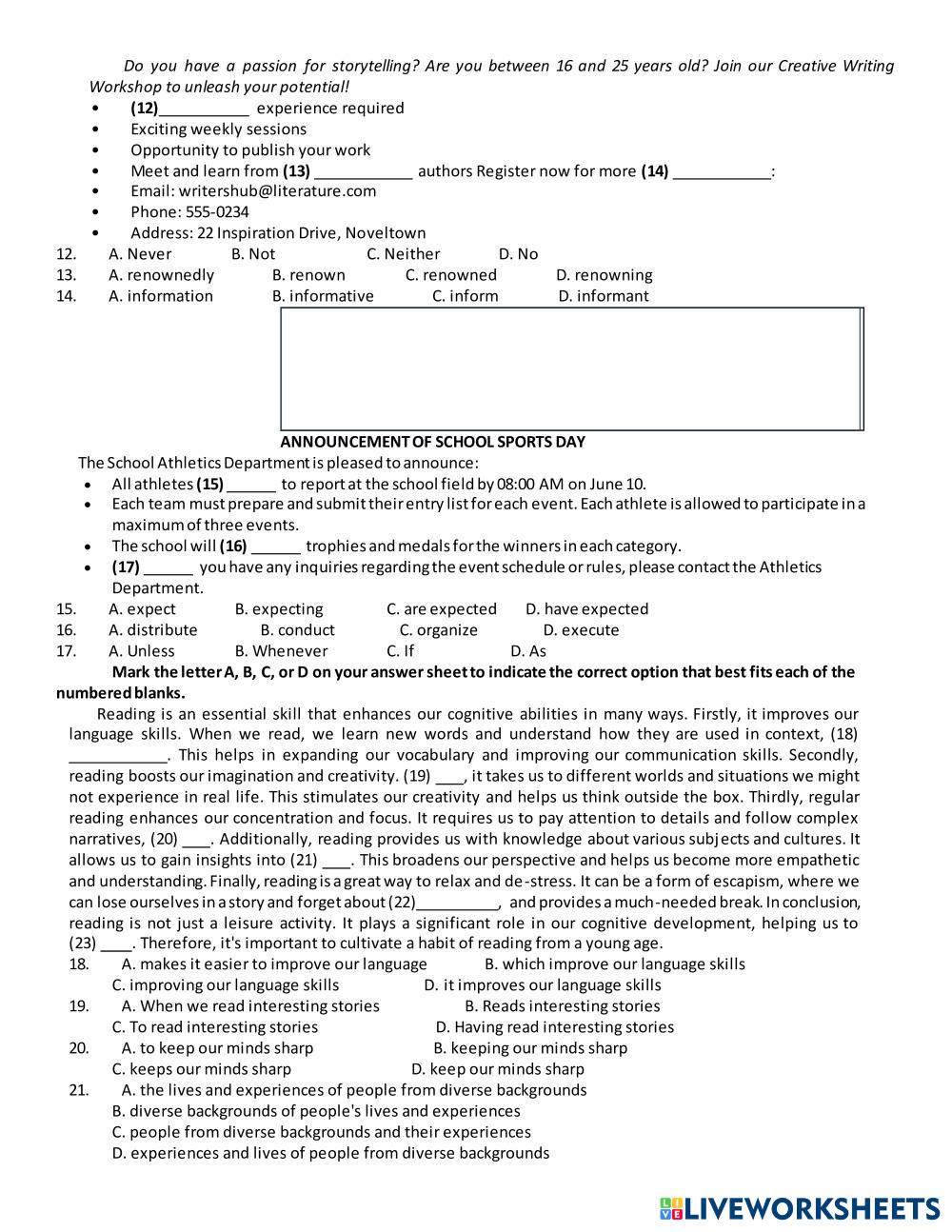 Created byTA Day Kem - B1 English language Grammar Age 10+ level: 9 English Author's Instructions My Google Classroom Courses × 0 classes selected (0 students total) Quick Access Select all classes (0 classes) All Classes Loading courses... Cancel Share Share to selected Course __COURSE_NAME__ __STUDENT_NAME__ (__STUDENT_EMAIL__) ST012 Download Worksheet Validation Check my answers Emails my answers to my teacher Full name Group/level School subject Teacher's email or key code Close Submit Validating worksheet... (12) Your answers have been sent to your teacher. Good luck! OK We encountered an error submitting your answers. Please try again. OK Advertisement | Go Ad Free Created byTA Day Kem - B1 English language Grammar Age 10+ level: 9 English Author's Instructions