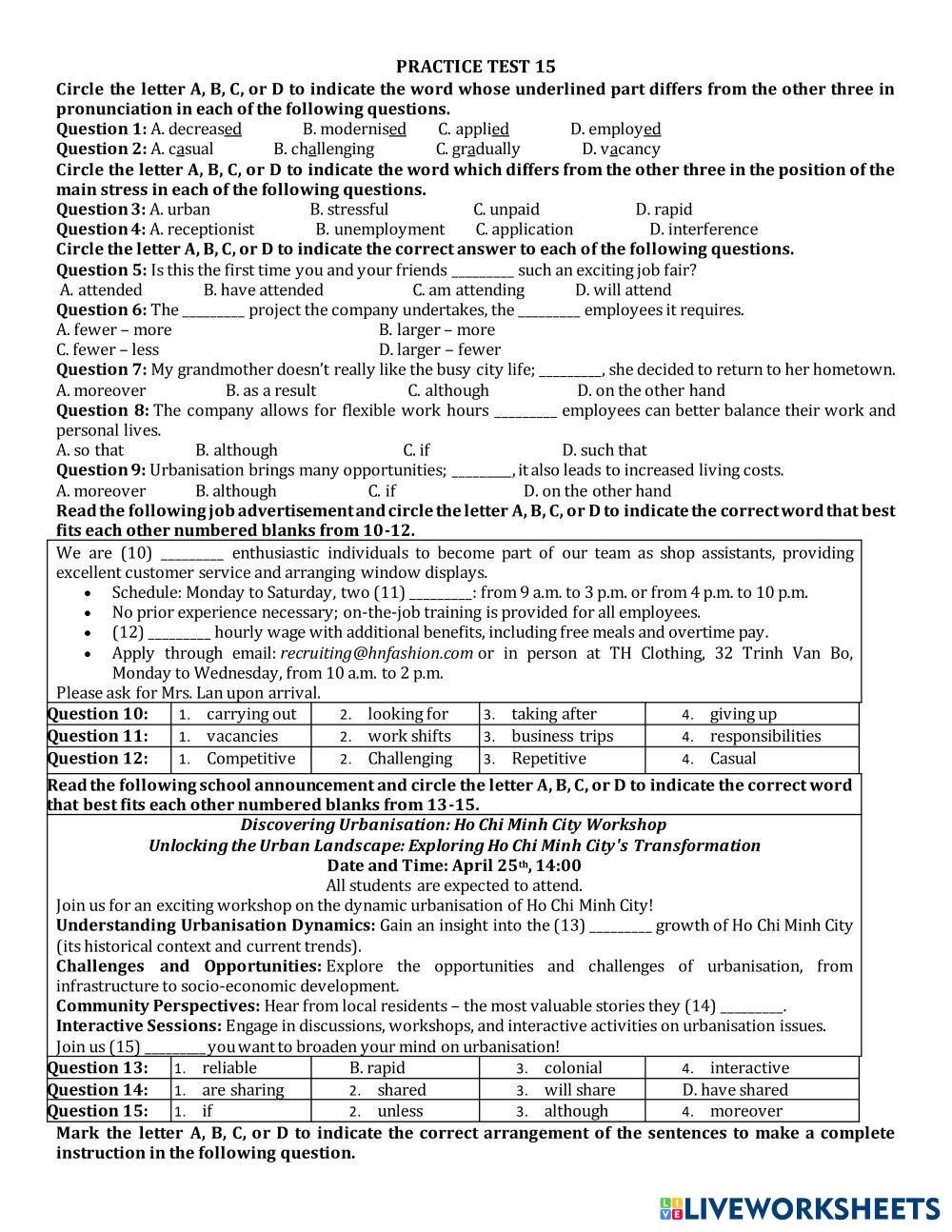 Created byTA Day Kem - B1 English language Grammar Age 10+ level: 9 English Author's Instructions My Google Classroom Courses × 0 classes selected (0 students total) Quick Access Select all classes (0 classes) All Classes Loading courses... Cancel Share Share to selected Course __COURSE_NAME__ __STUDENT_NAME__ (__STUDENT_EMAIL__) ST015 Download Worksheet Validation Check my answers Emails my answers to my teacher Full name Group/level School subject Teacher's email or key code Close Submit Validating worksheet... (12) Your answers have been sent to your teacher. Good luck! OK We encountered an error submitting your answers. Please try again. OK Advertisement | Go Ad Free Created byTA Day Kem - B1 English language Grammar Age 10+ level: 9 English Author's Instructions