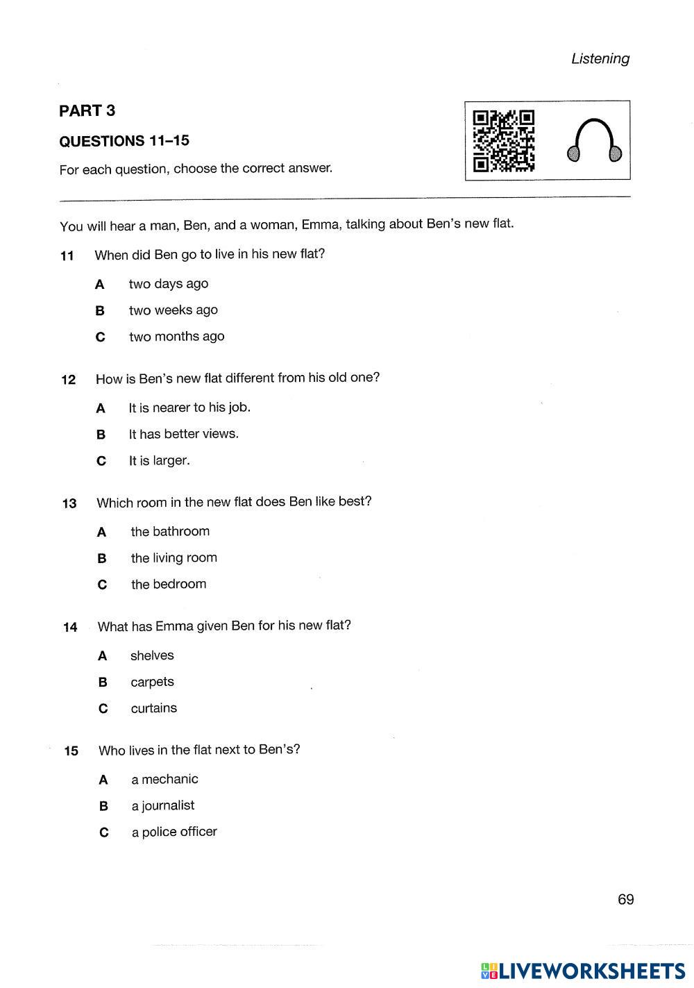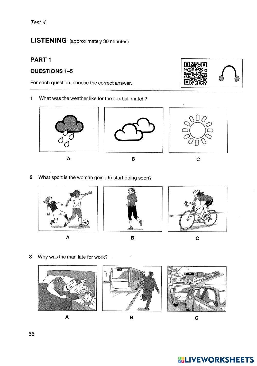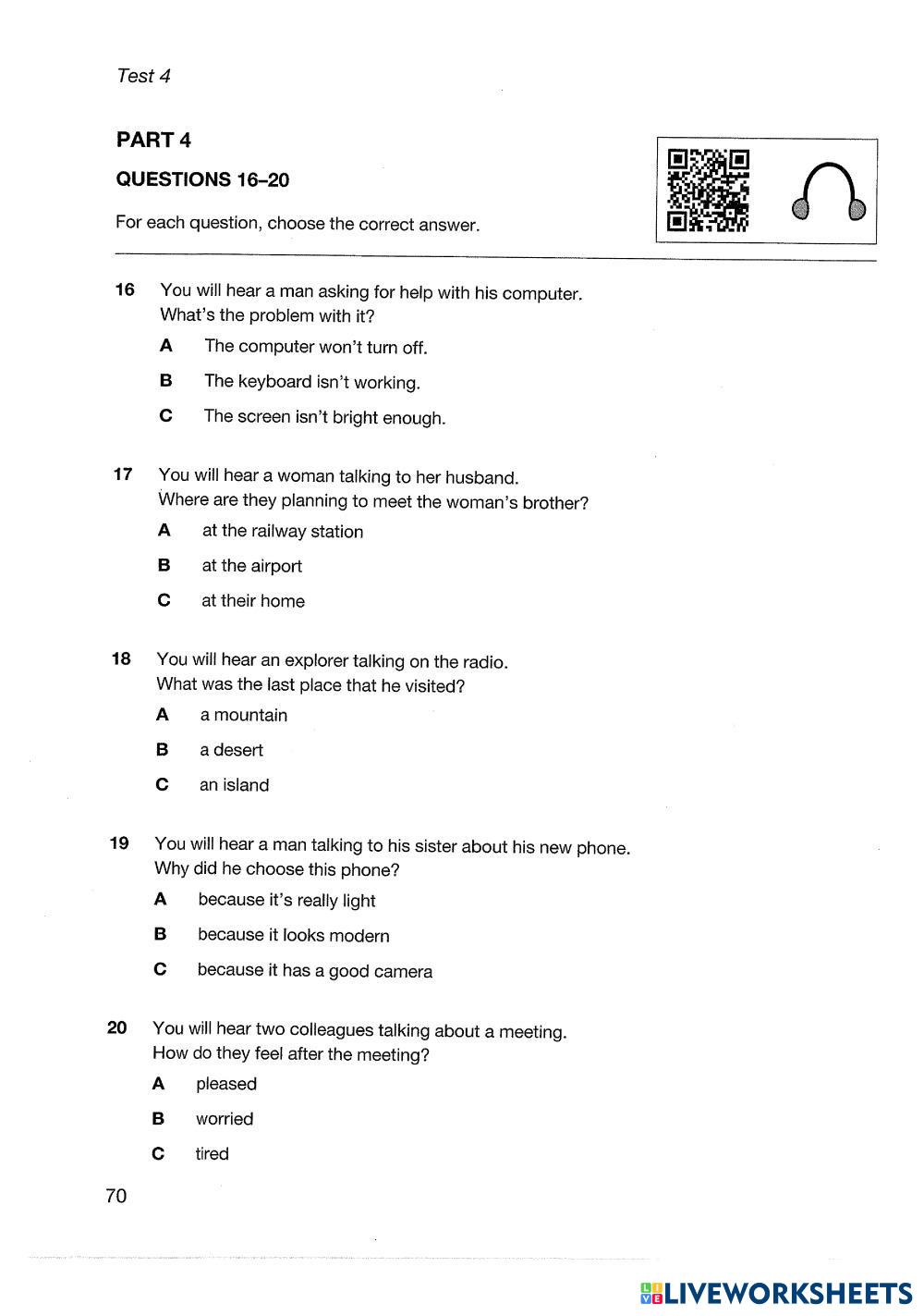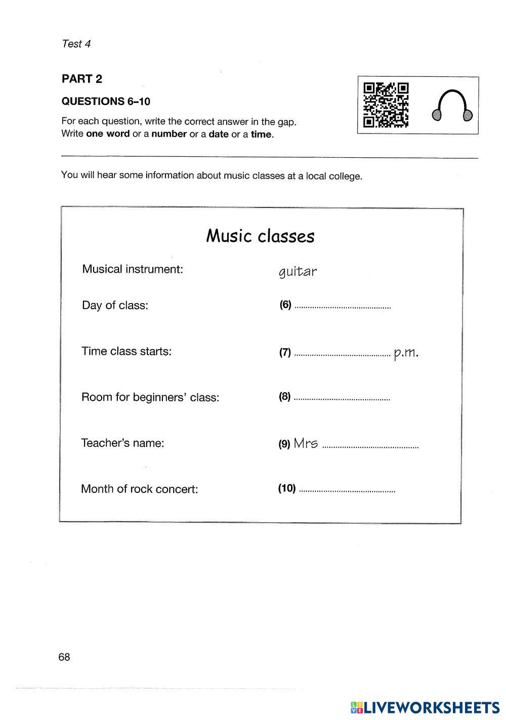 Created byA.G.Walter English language Enlish Age 18+ level: Ket 1 T4-2 LISTENING English Author's Instructions Ket 1 T4-2 LISTENING My Google Classroom Courses × 0 classes selected (0 students total) Quick Access Select all classes (0 classes) All Classes Loading courses... Cancel Share Share to selected Course __COURSE_NAME__ __STUDENT_NAME__ (__STUDENT_EMAIL__) Ket 1 T4-2 LISTENING Download Worksheet Validation Check my answers Emails my answers to my teacher Full name Group/level School subject Teacher's email or key code Close Submit Validating worksheet... (12) Your answers have been sent to your teacher. Good luck! OK We encountered an error submitting your answers. Please try again. OK Advertisement | Go Ad Free Created byA.G.Walter English language Enlish Age 18+ level: Ket 1 T4-2 LISTENING English Author's Instructions Ket 1 T4-2 LISTENING