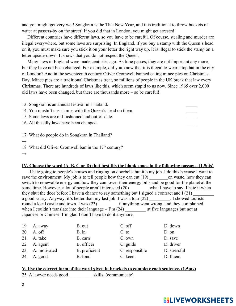 Created byTA Day Kem - Movers English language English Age 12-18 level: 6-8 English Author's Instructions My Google Classroom Courses × 0 classes selected (0 students total) Quick Access Select all classes (0 classes) All Classes Loading courses... Cancel Share Share to selected Course __COURSE_NAME__ __STUDENT_NAME__ (__STUDENT_EMAIL__) SW9_45p_2_HK2 Download Worksheet Validation Check my answers Emails my answers to my teacher Full name Group/level School subject Teacher's email or key code Close Submit Validating worksheet... (12) Your answers have been sent to your teacher. Good luck! OK We encountered an error submitting your answers. Please try again. OK Advertisement | Go Ad Free Created byTA Day Kem - Movers English language English Age 12-18 level: 6-8 English Author's Instructions