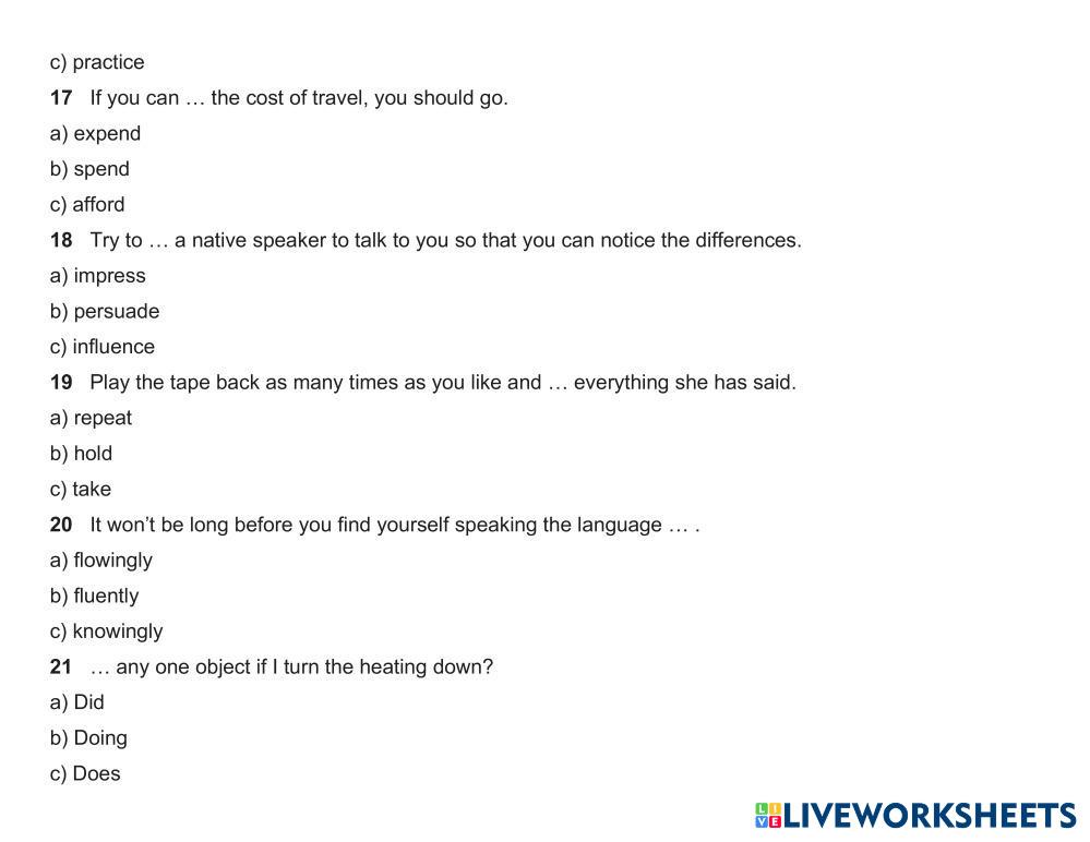 Advanced English Grammar Test – Multiple-choice Test 10