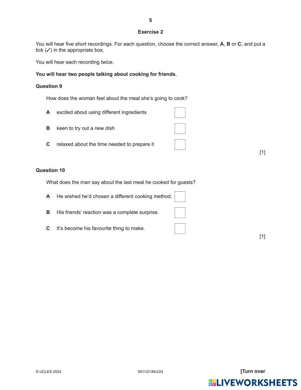Created byLiam Egan English as a Second Language (ESL) Listening Age 9-17 level: IGCSE English Author's Instructions My Google Classroom Courses × 0 classes selected (0 students total) Quick Access Select all classes (0 classes) All Classes Loading courses... Cancel Share Share to selected Course __COURSE_NAME__ __STUDENT_NAME__ (__STUDENT_EMAIL__) IGCSE ESL - Full Listening Download Worksheet Validation Check my answers Emails my answers to my teacher Full name Group/level School subject Teacher's email or key code Close Submit Validating worksheet... (12) Your answers have been sent to your teacher. Good luck! OK We encountered an error submitting your answers. Please try again. OK Advertisement | Go Ad Free Created byLiam Egan English as a Second Language (ESL) Listening Age 9-17 level: IGCSE English Author's Instructions