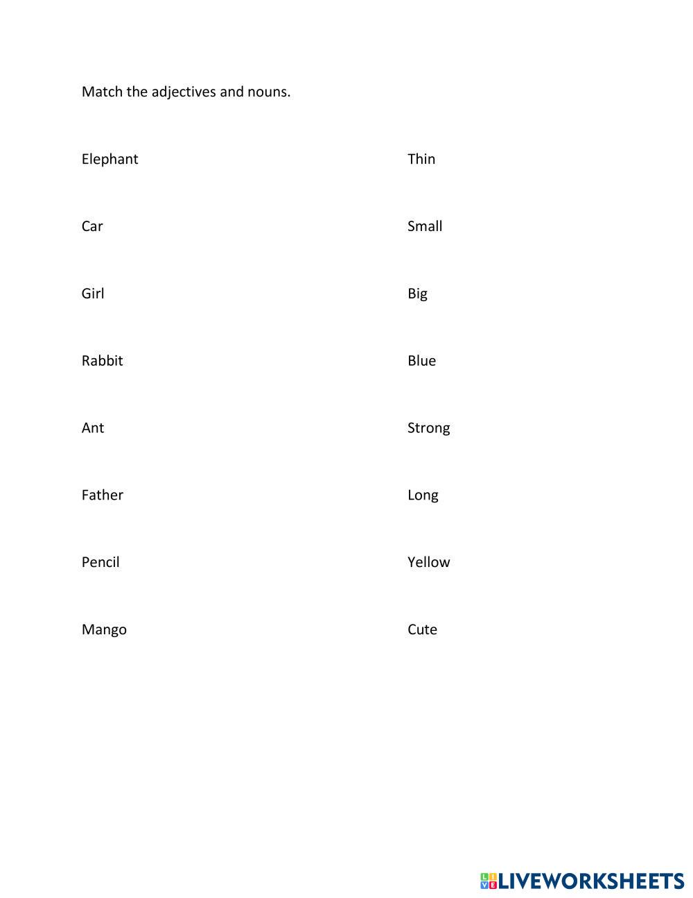 Fill with correct verbs and match the adjectives and nouns.
