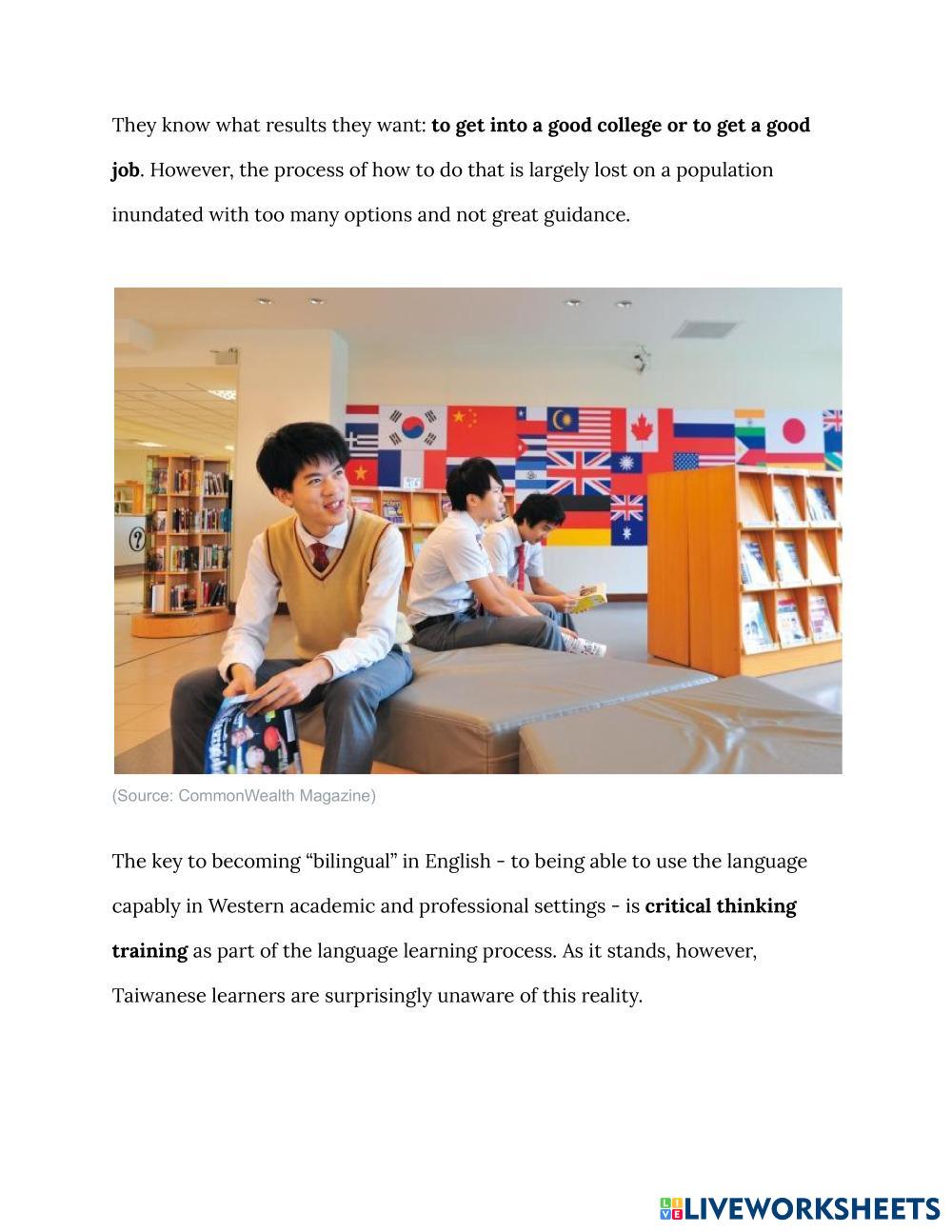 Read the news from CommonWealth Magazine, and the content is about the bilingual education. Answer some multiple choices' questions after reading whole article.