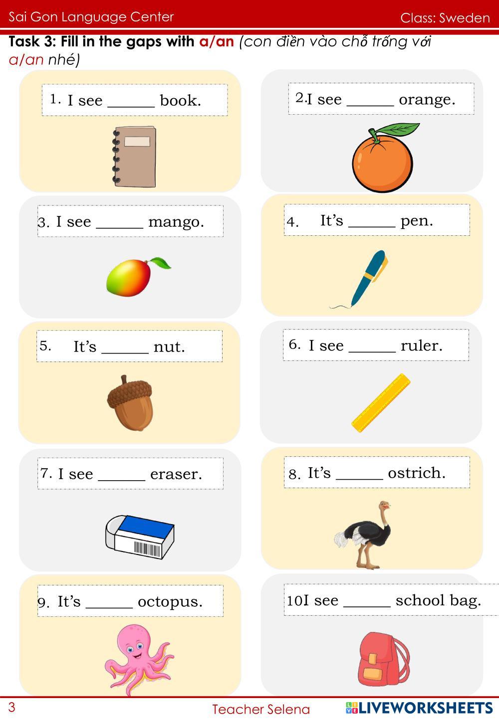 Created byMIYEON English as a Second Language (ESL) Sweden 21/08 Age 6-4 level: Sweden 21/08 English Author's Instructions My Google Classroom Courses × 0 classes selected (0 students total) Quick Access Select all classes (0 classes) All Classes Loading courses... Cancel Share Share to selected Course __COURSE_NAME__ __STUDENT_NAME__ (__STUDENT_EMAIL__) Sweden 21/08 Download Worksheet Validation Check my answers Emails my answers to my teacher Full name Group/level School subject Teacher's email or key code Close Submit Validating worksheet... (12) Your answers have been sent to your teacher. Good luck! OK We encountered an error submitting your answers. Please try again. OK Advertisement | Go Ad Free Created byMIYEON English as a Second Language (ESL) Sweden 21/08 Age 6-4 level: Sweden 21/08 English Author's Instructions