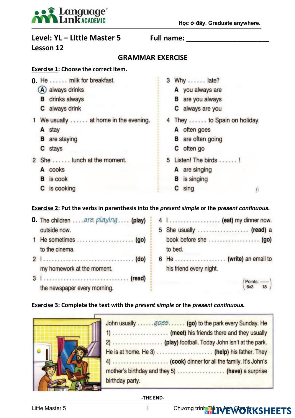 Created byHUYỀN ANH English as a Second Language (ESL) Subject Verb Agreement Age 8-10 level: LM5 English Author's Instructions My Google Classroom Courses × 0 classes selected (0 students total) Quick Access Select all classes (0 classes) All Classes Loading courses... Cancel Share Share to selected Course __COURSE_NAME__ __STUDENT_NAME__ (__STUDENT_EMAIL__) LM5 HOMEWORK 12B Download Worksheet Validation Check my answers Emails my answers to my teacher Full name Group/level School subject Teacher's email or key code Close Submit Validating worksheet... (12) Your answers have been sent to your teacher. Good luck! OK We encountered an error submitting your answers. Please try again. OK Advertisement | Go Ad Free Created byHUYỀN ANH English as a Second Language (ESL) Subject Verb Agreement Age 8-10 level: LM5 English Author's Instructions