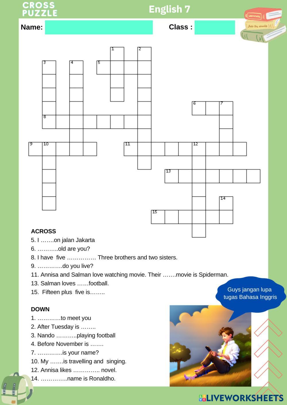 Created by Rosipah English as a Second Language (ESL) Vocabulary introduction Age 10-12 level: 7 English Author's Instructions My Google Classroom Courses × 0 classes selected (0 students total) Quick Access Select all classes (0 classes) All Classes Loading courses... Cancel Share Share to selected Course __COURSE_NAME__ __STUDENT_NAME__ (__STUDENT_EMAIL__) Cross Puzlle Download Worksheet Validation Check my answers Emails my answers to my teacher Full name Group/level School subject Teacher's email or key code Close Submit Validating worksheet... (12) Your answers have been sent to your teacher. Good luck! OK We encountered an error submitting your answers. Please try again. OK Advertisement | Go Ad Free Created by Rosipah English as a Second Language (ESL) Vocabulary introduction Age 10-12 level: 7 English Author's Instructions