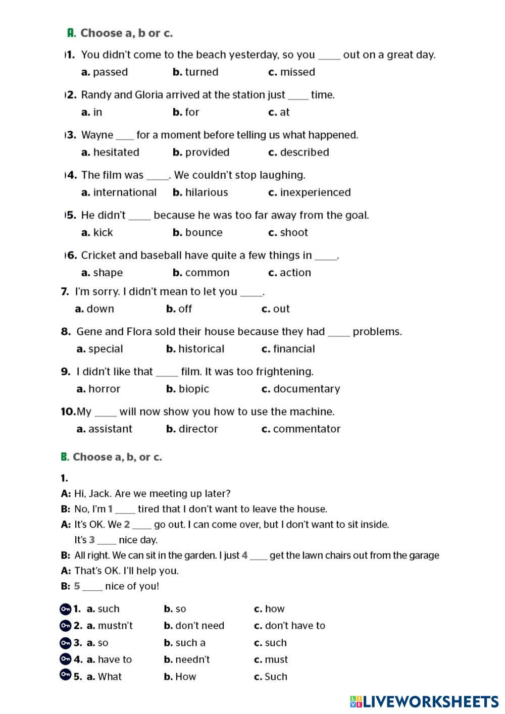 Created by jmaruzsi English as a Second Language (ESL) Grammar and Vocabulary Review Age 14 level: pre-intermediate English Author's Instructions My Google Classroom Courses × 0 classes selected (0 students total) Quick Access Select all classes (0 classes) All Classes Loading courses... Cancel Share Share to selected Course __COURSE_NAME__ __STUDENT_NAME__ (__STUDENT_EMAIL__) Workbook_round-up_Module 8 Download Worksheet Validation Check my answers Emails my answers to my teacher Full name Group/level School subject Teacher's email or key code Close Submit Validating worksheet... (12) Your answers have been sent to your teacher. Good luck! OK We encountered an error submitting your answers. Please try again. OK Advertisement | Go Ad Free Created by jmaruzsi English as a Second Language (ESL) Grammar and Vocabulary Review Age 14 level: pre-intermediate English Author's Instructions