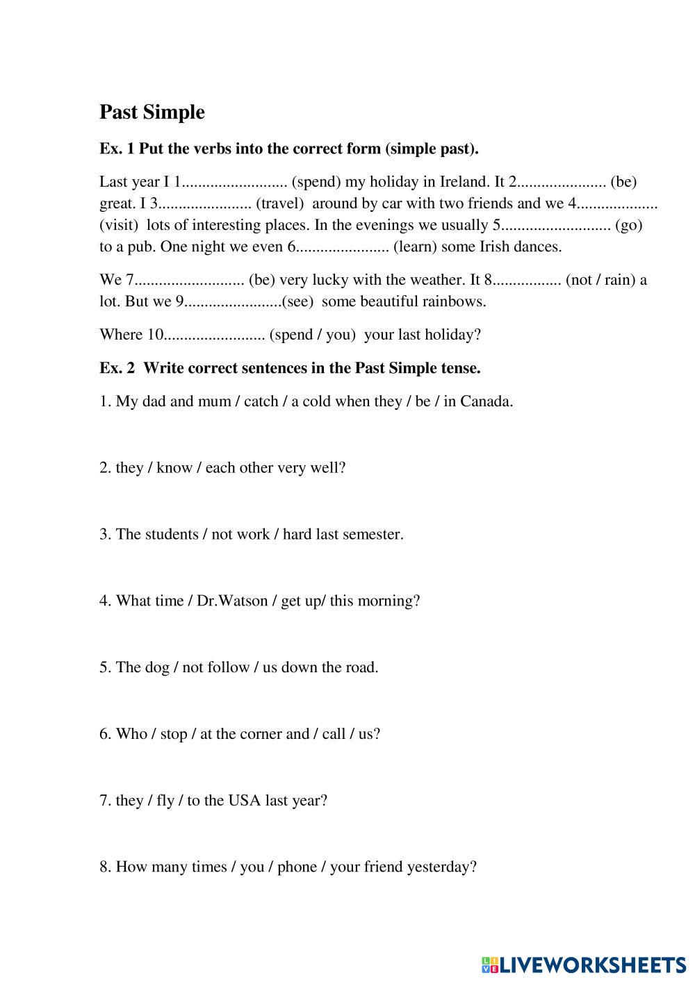 Created by feruka English as a Second Language (ESL) Past simple Age 9-11 level: pre-intermediate English Author's Instructions My Google Classroom Courses × 0 classes selected (0 students total) Quick Access Select all classes (0 classes) All Classes Loading courses... Cancel Share Share to selected Course __COURSE_NAME__ __STUDENT_NAME__ (__STUDENT_EMAIL__) Past Simple Download Worksheet Validation Check my answers Emails my answers to my teacher Full name Group/level School subject Teacher's email or key code Close Submit Validating worksheet... (12) Your answers have been sent to your teacher. Good luck! OK We encountered an error submitting your answers. Please try again. OK Advertisement | Go Ad Free Created by feruka English as a Second Language (ESL) Past simple Age 9-11 level: pre-intermediate English Author's Instructions