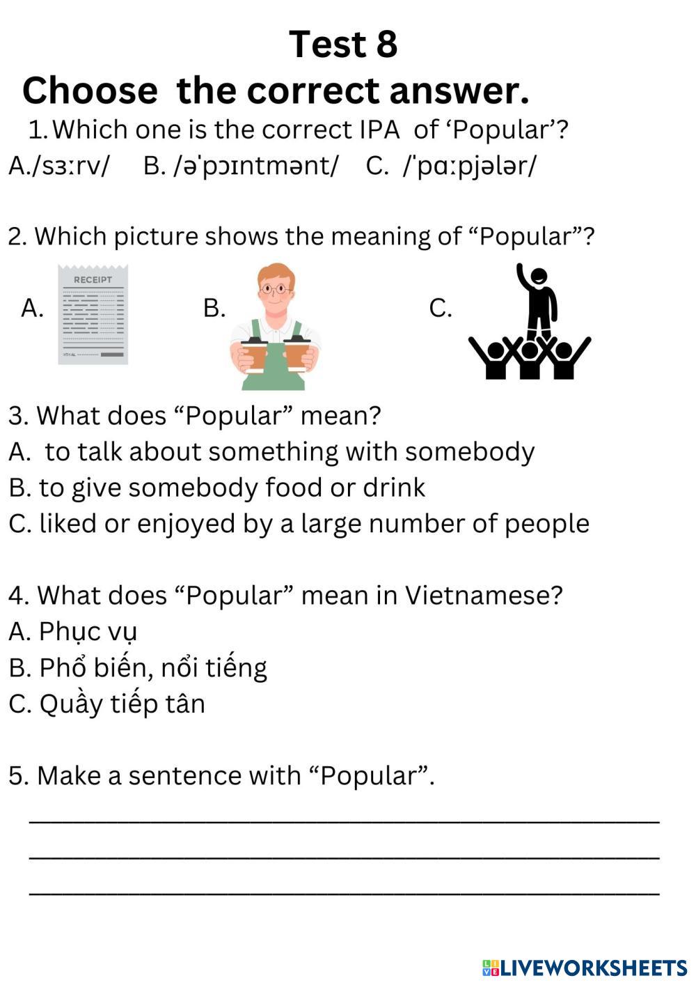 Created byThuy Do English as a Second Language (ESL) Voc. for KET Age 10-15 level: KET English Author's Instructions Voc. for KET My Google Classroom Courses × 0 classes selected (0 students total) Quick Access Select all classes (0 classes) All Classes Loading courses... Cancel Share Share to selected Course __COURSE_NAME__ __STUDENT_NAME__ (__STUDENT_EMAIL__) Voc. for KET (popular) Download Worksheet Validation Check my answers Emails my answers to my teacher Full name Group/level School subject Teacher's email or key code Close Submit Validating worksheet... (12) Your answers have been sent to your teacher. Good luck! OK We encountered an error submitting your answers. Please try again. OK Advertisement | Go Ad Free Created byThuy Do English as a Second Language (ESL) Voc. for KET Age 10-15 level: KET English Author's Instructions Voc. for KET