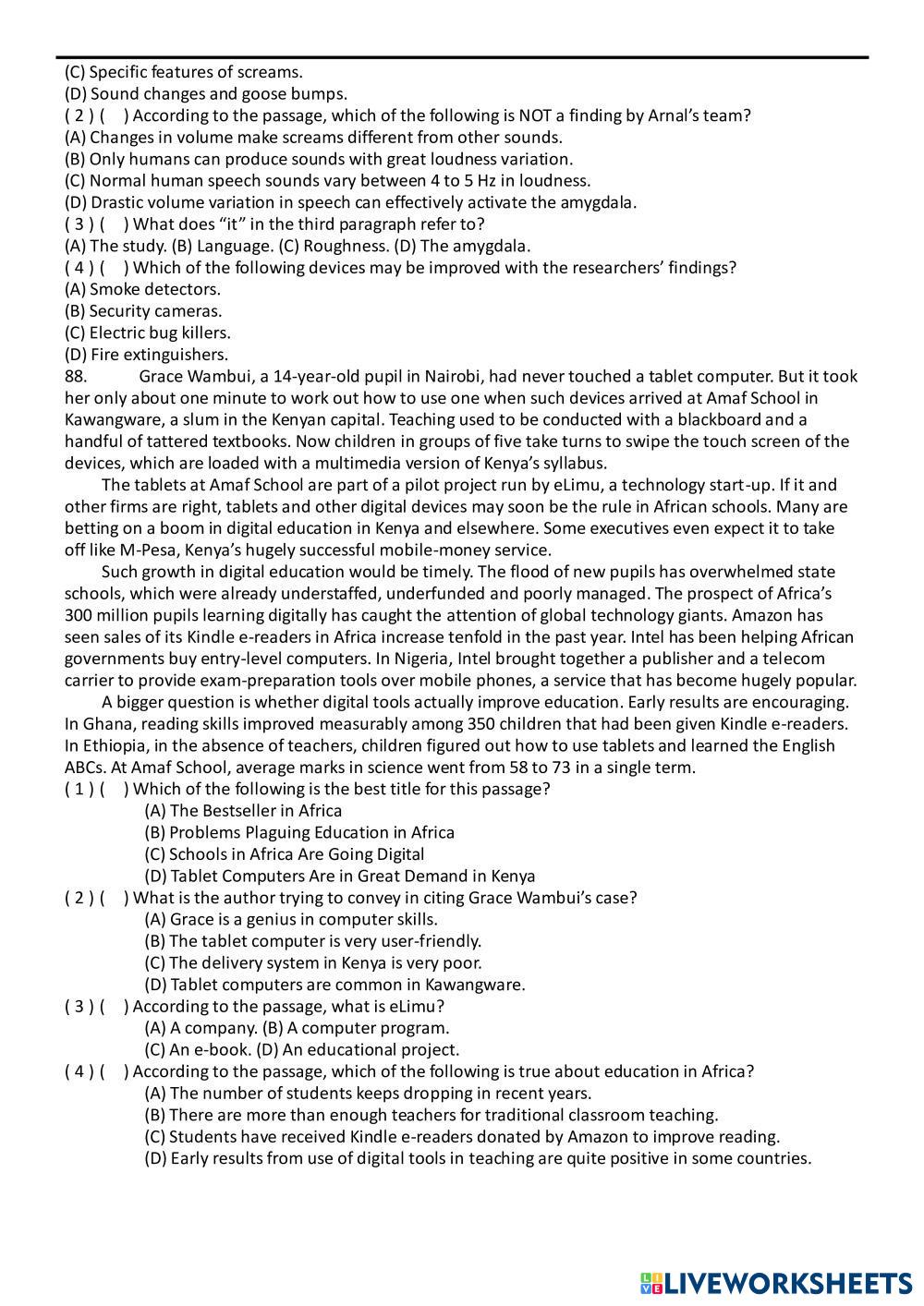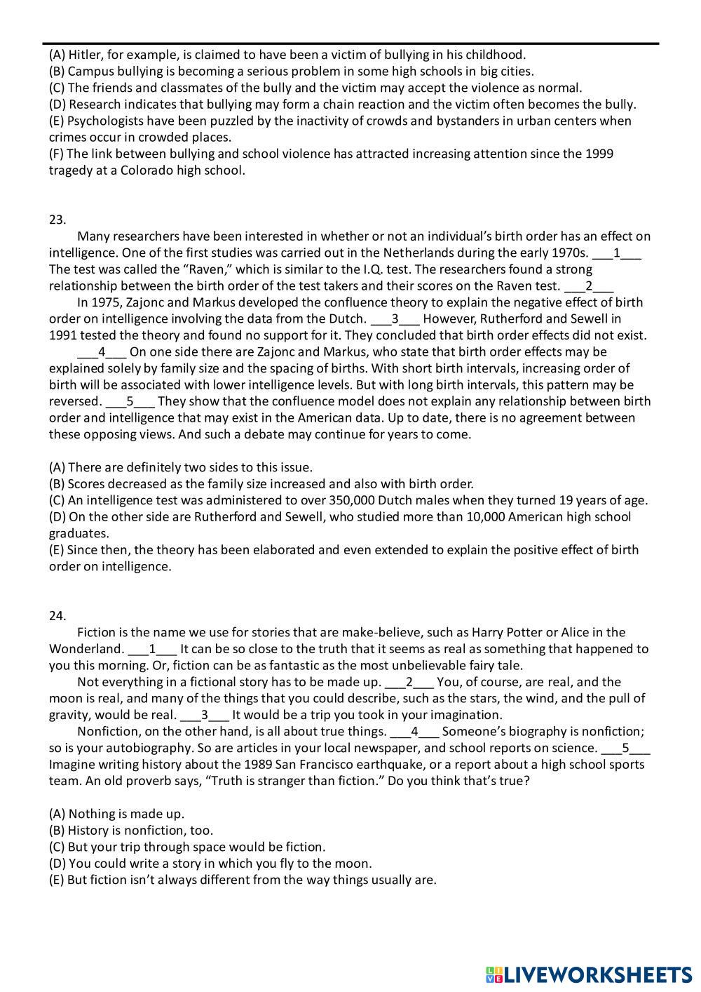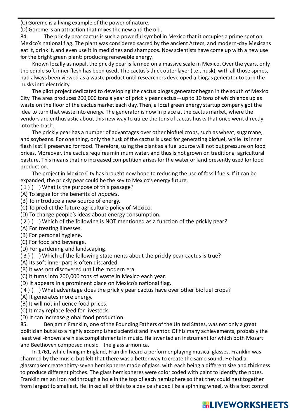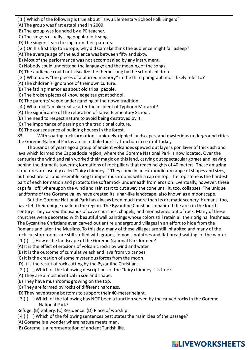 Created by gabe201718 English as a Second Language (ESL) Grammar and Reading Age 15+ level: Grade 12 English Author's Instructions My Google Classroom Courses × 0 classes selected (0 students total) Quick Access Select all classes (0 classes) All Classes Loading courses... Cancel Share Share to selected Course __COURSE_NAME__ __STUDENT_NAME__ (__STUDENT_EMAIL__) 高中綜合練習Unit 20 Download Worksheet Validation Check my answers Emails my answers to my teacher Full name Group/level School subject Teacher's email or key code Close Submit Validating worksheet... (12) Your answers have been sent to your teacher. Good luck! OK We encountered an error submitting your answers. Please try again. OK Advertisement | Go Ad Free Created by gabe201718 English as a Second Language (ESL) Grammar and Reading Age 15+ level: Grade 12 English Author's Instructions
