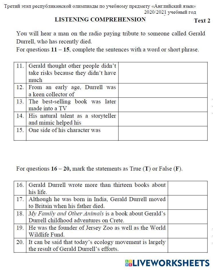 - Олимпиада Form 10 3 этап 2020 Listening text 2