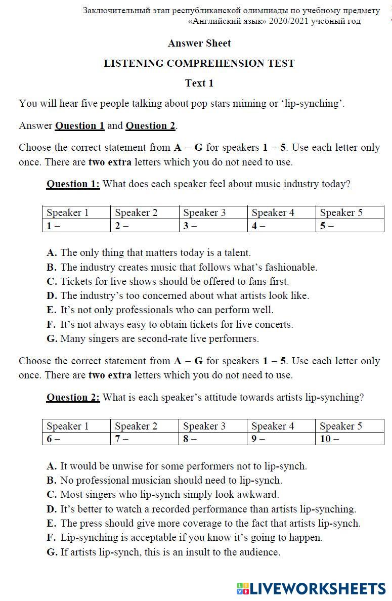 - Олимпиада Form 10 4 этап 2020 Listening text 1