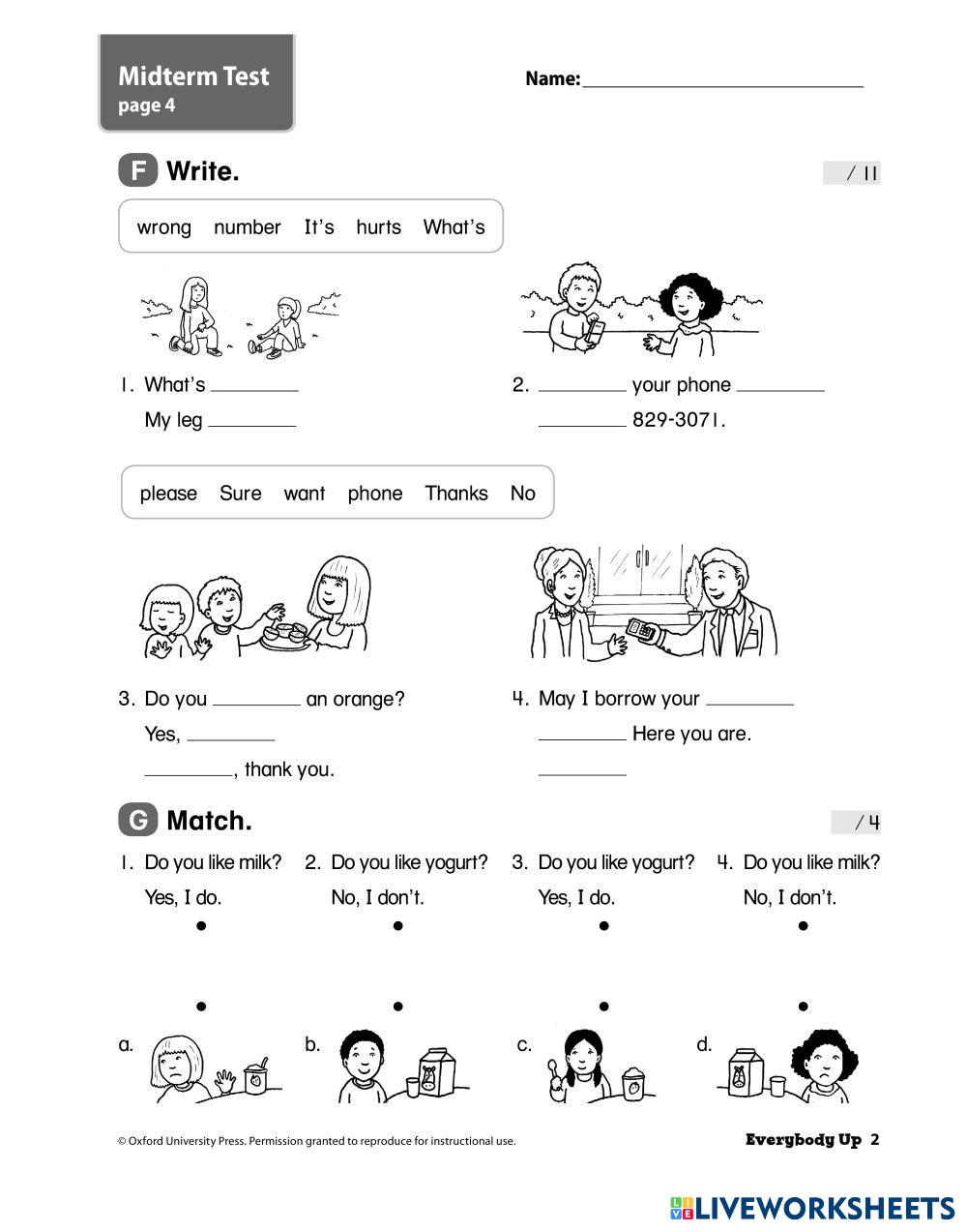 Created byDo Tham English as a Second Language (ESL) MID-TERM UP 2 Age 9-14 level: UP2 English Author's Instructions MID-TERM UP 2 My Google Classroom Courses × 0 classes selected (0 students total) Quick Access Select all classes (0 classes) All Classes Loading courses... Cancel Share Share to selected Course __COURSE_NAME__ __STUDENT_NAME__ (__STUDENT_EMAIL__) MID-TERM UP 2 Download Worksheet Validation Check my answers Emails my answers to my teacher Full name Group/level School subject Teacher's email or key code Close Submit Validating worksheet... (12) Your answers have been sent to your teacher. Good luck! OK We encountered an error submitting your answers. Please try again. OK Advertisement | Go Ad Free Created byDo Tham English as a Second Language (ESL) MID-TERM UP 2 Age 9-14 level: UP2 English Author's Instructions MID-TERM UP 2