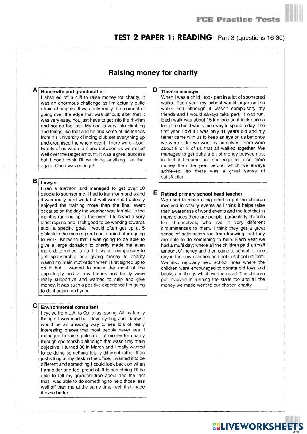 Created by davidho English as a Second Language (ESL) Practice English Age 16+ level: 10 English Author's Instructions BD1 My Google Classroom Courses × 0 classes selected (0 students total) Quick Access Select all classes (0 classes) All Classes Loading courses... Cancel Share Share to selected Course __COURSE_NAME__ __STUDENT_NAME__ (__STUDENT_EMAIL__) BD1 Download Worksheet Validation Check my answers Emails my answers to my teacher Full name Group/level School subject Teacher's email or key code Close Submit Validating worksheet... (12) Your answers have been sent to your teacher. Good luck! OK We encountered an error submitting your answers. Please try again. OK Advertisement | Go Ad Free Created by davidho English as a Second Language (ESL) Practice English Age 16+ level: 10 English Author's Instructions BD1
