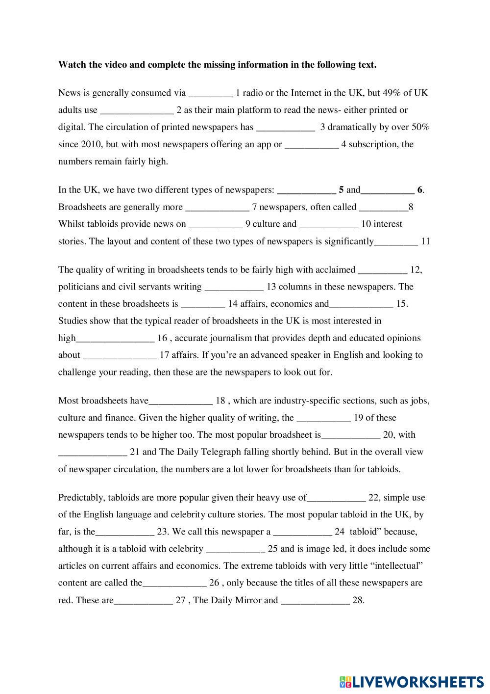 Complete the text with the missing information