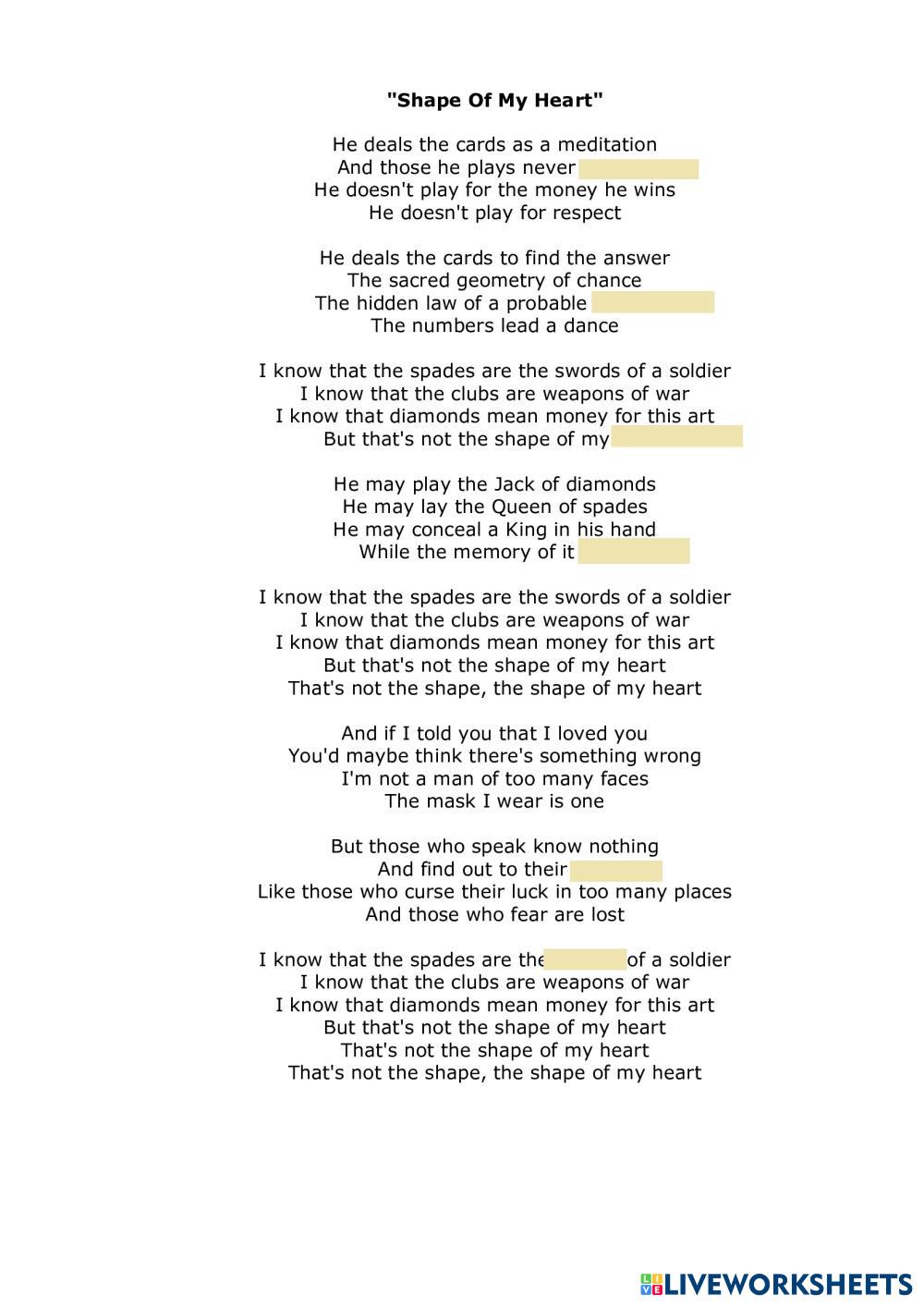 Created by Monerk English as a Second Language (ESL) Music Age 9+ level: intermediate English Author's Instructions My Google Classroom Courses × 0 classes selected (0 students total) Quick Access Select all classes (0 classes) All Classes Loading courses... Cancel Share Share to selected Course __COURSE_NAME__ __STUDENT_NAME__ (__STUDENT_EMAIL__) Shape Download Worksheet Validation Check my answers Emails my answers to my teacher Full name Group/level School subject Teacher's email or key code Close Submit Validating worksheet... (12) Your answers have been sent to your teacher. Good luck! OK We encountered an error submitting your answers. Please try again. OK Advertisement | Go Ad Free Created by Monerk English as a Second Language (ESL) Music Age 9+ level: intermediate English Author's Instructions