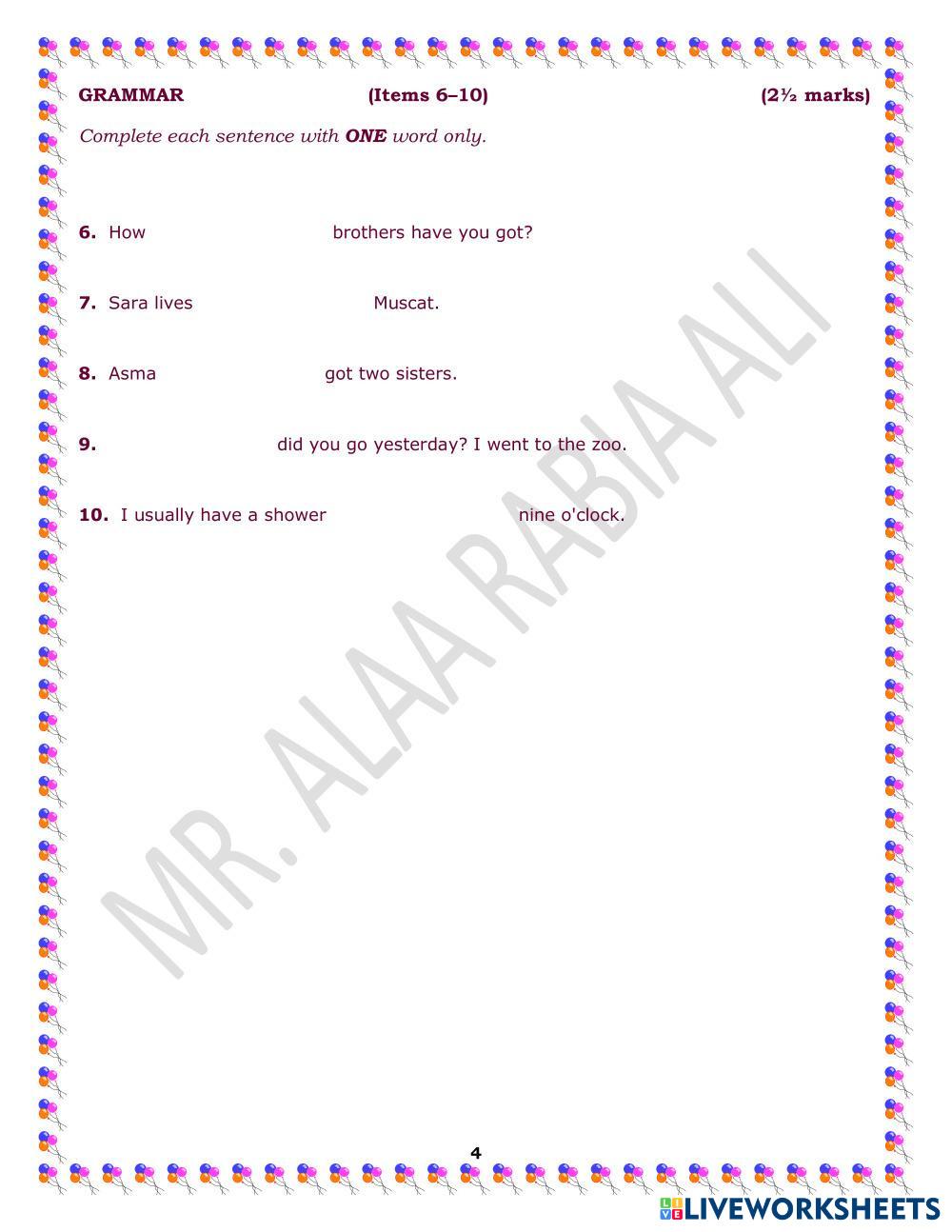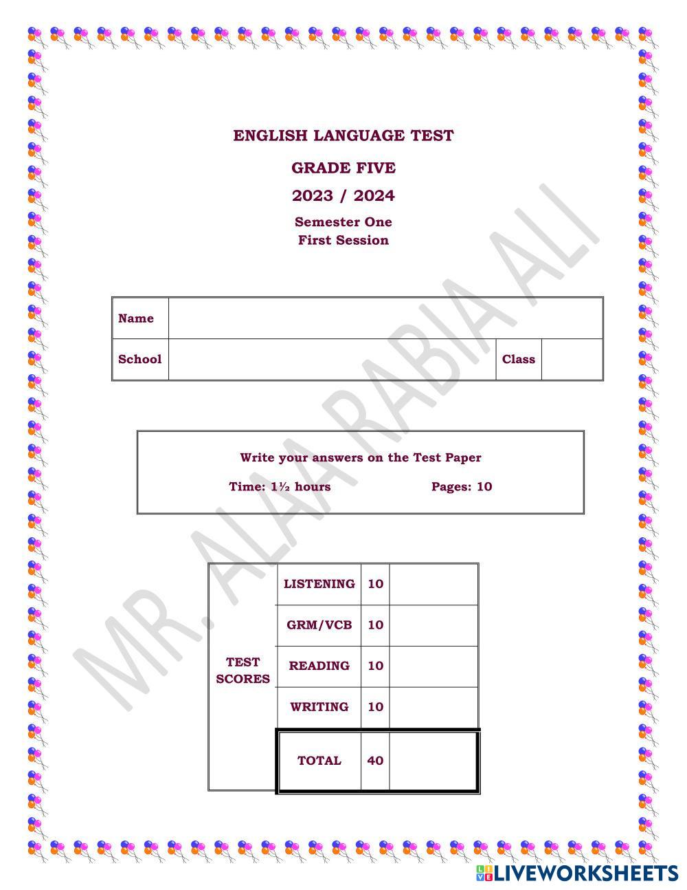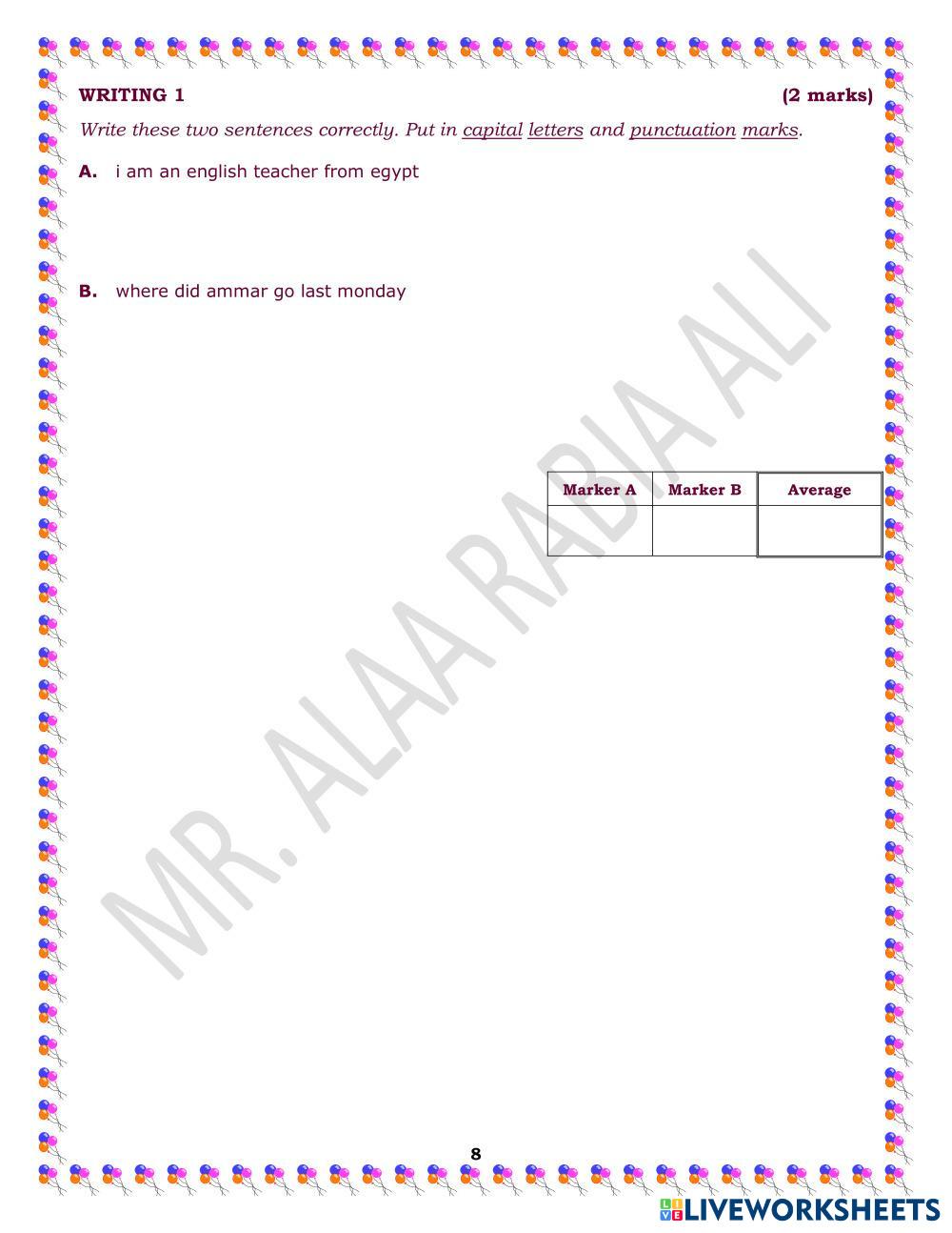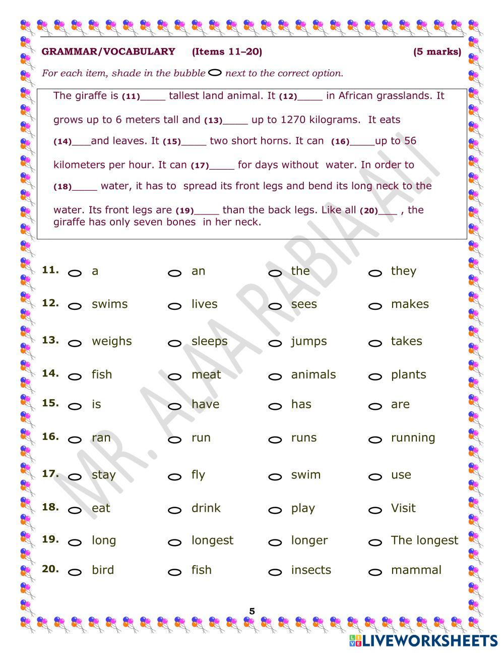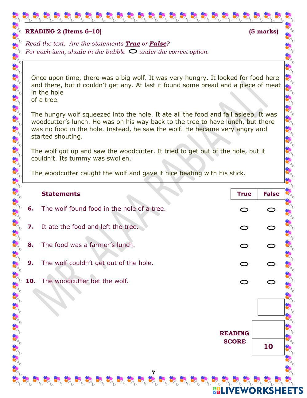 Created byAlaa Rabia Ali English as a Second Language (ESL) Listening and vocabulary Age 10+ level: 7 - 9 English Author's Instructions Students answer all the tasks My Google Classroom Courses × 0 classes selected (0 students total) Quick Access Select all classes (0 classes) All Classes Loading courses... Cancel Share Share to selected Course __COURSE_NAME__ __STUDENT_NAME__ (__STUDENT_EMAIL__) GRADE 5 MOCK EXAM NO. 5 S 1 Download Worksheet Validation Check my answers Emails my answers to my teacher Full name Group/level School subject Teacher's email or key code Close Submit Validating worksheet... (12) Your answers have been sent to your teacher. Good luck! OK We encountered an error submitting your answers. Please try again. OK Advertisement | Go Ad Free Created byAlaa Rabia Ali English as a Second Language (ESL) Listening and vocabulary Age 10+ level: 7 - 9 English Author's Instructions Students answer all the tasks