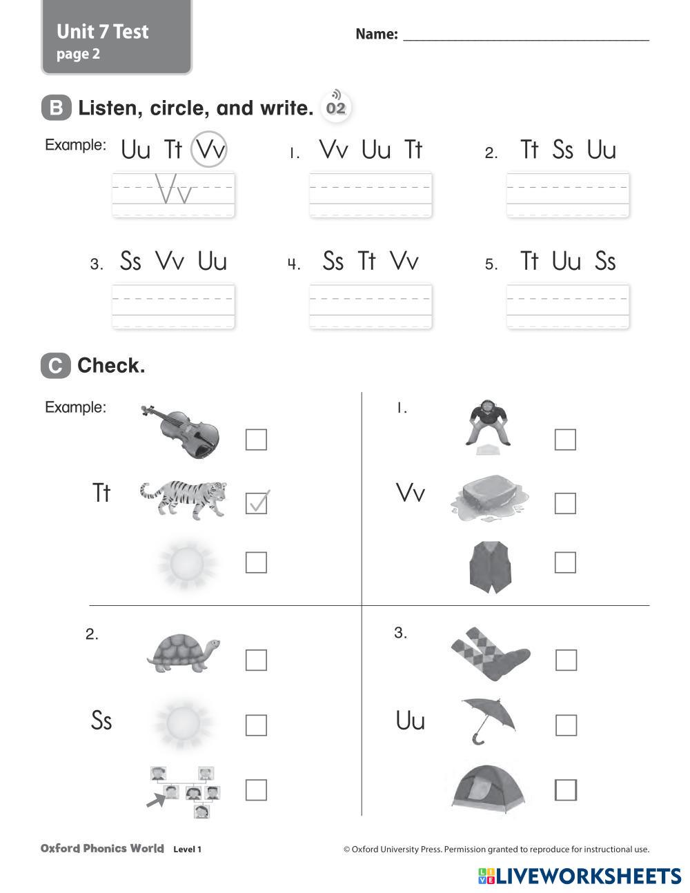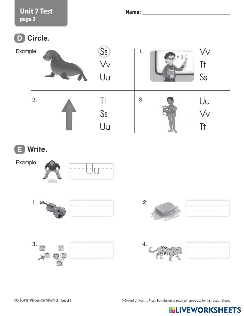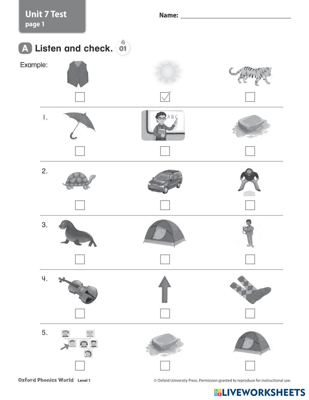 Created byDo Tham English as a Second Language (ESL) TEST OXFORD UNIT 7 Age 5-9 level: OX 1 English Author's Instructions TEST OXFORD UNIT 7 My Google Classroom Courses × 0 classes selected (0 students total) Quick Access Select all classes (0 classes) All Classes Loading courses... Cancel Share Share to selected Course __COURSE_NAME__ __STUDENT_NAME__ (__STUDENT_EMAIL__) TEST OXFORD UNIT 7 Download Worksheet Validation Check my answers Emails my answers to my teacher Full name Group/level School subject Teacher's email or key code Close Submit Validating worksheet... (12) Your answers have been sent to your teacher. Good luck! OK We encountered an error submitting your answers. Please try again. OK Advertisement | Go Ad Free Created byDo Tham English as a Second Language (ESL) TEST OXFORD UNIT 7 Age 5-9 level: OX 1 English Author's Instructions TEST OXFORD UNIT 7