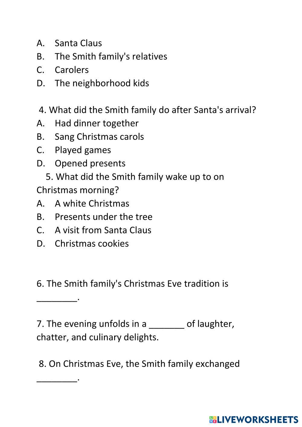 Created byLê Minh Kha English as a Second Language (ESL) Reading comprehension Age 6-14 level: A2 English Author's Instructions My Google Classroom Courses × 0 classes selected (0 students total) Quick Access Select all classes (0 classes) All Classes Loading courses... Cancel Share Share to selected Course __COURSE_NAME__ __STUDENT_NAME__ (__STUDENT_EMAIL__) Special occasion Download Worksheet Validation Check my answers Emails my answers to my teacher Full name Group/level School subject Teacher's email or key code Close Submit Validating worksheet... (12) Your answers have been sent to your teacher. Good luck! OK We encountered an error submitting your answers. Please try again. OK Advertisement | Go Ad Free Created byLê Minh Kha English as a Second Language (ESL) Reading comprehension Age 6-14 level: A2 English Author's Instructions