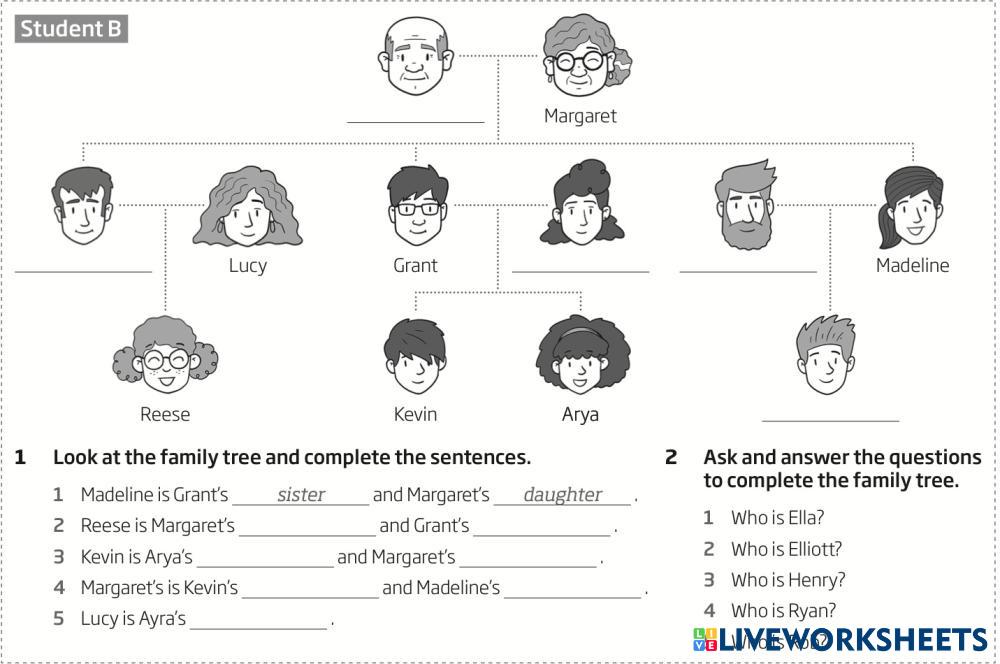 Roadmap A2 |2A| Vocabulary: Family Members. Student B