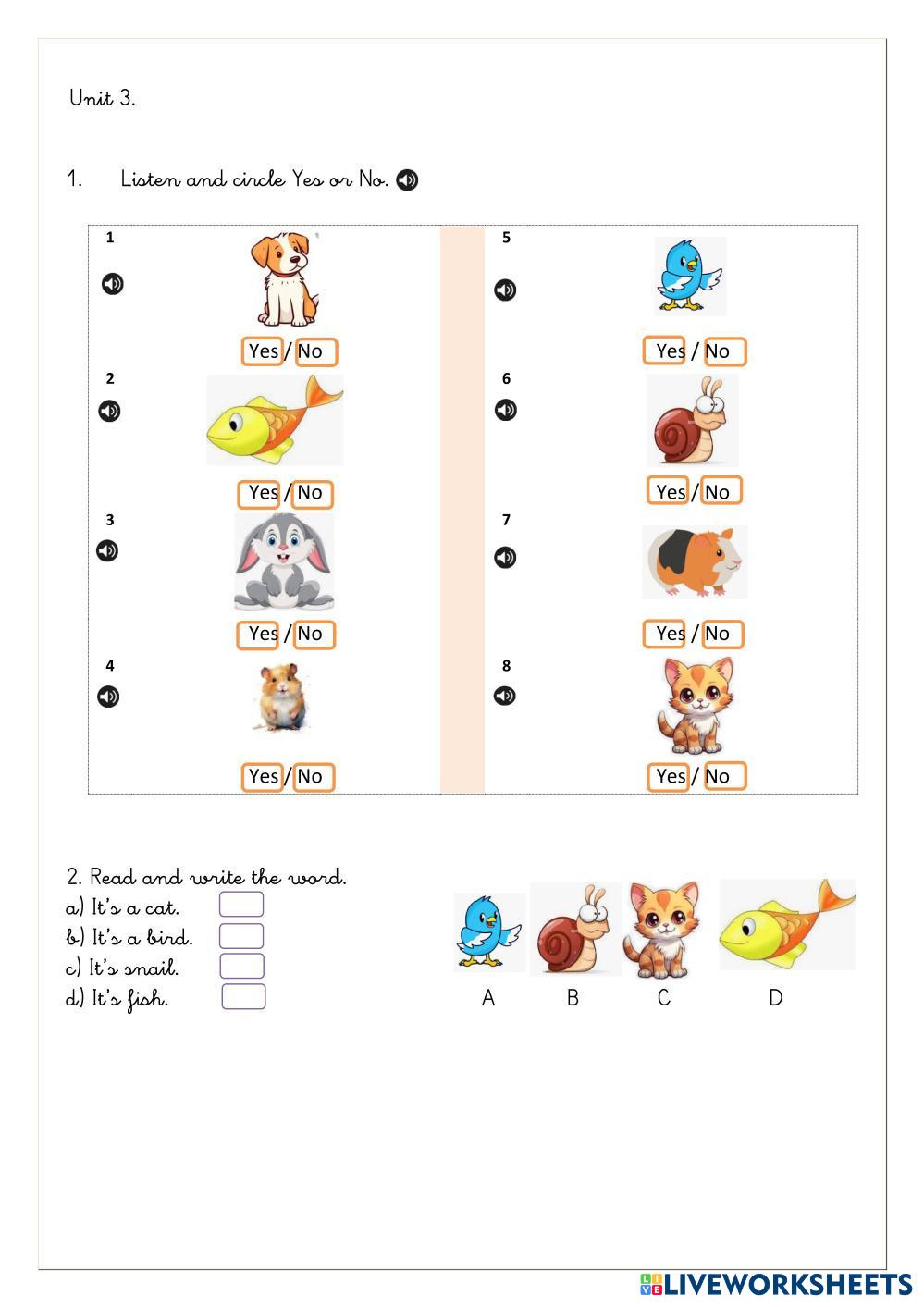 Created byHorten English as a Second Language (ESL) Pets Age 6-10 level: 1º English Author's Instructions Realizar la ficha My Google Classroom Courses × 0 classes selected (0 students total) Quick Access Select all classes (0 classes) All Classes Loading courses... Cancel Share Share to selected Course __COURSE_NAME__ __STUDENT_NAME__ (__STUDENT_EMAIL__) Pets Download Worksheet Validation Check my answers Emails my answers to my teacher Full name Group/level School subject Teacher's email or key code Close Submit Validating worksheet... (12) Your answers have been sent to your teacher. Good luck! OK We encountered an error submitting your answers. Please try again. OK Advertisement | Go Ad Free Created byHorten English as a Second Language (ESL) Pets Age 6-10 level: 1º English Author's Instructions Realizar la ficha