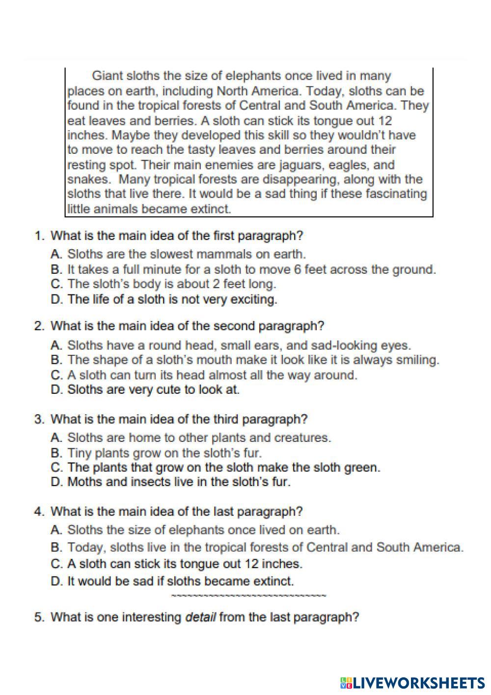 Created by melin123 English as a Second Language (ESL) Reading comprehension Age 9-18 level: A2 English Author's Instructions My Google Classroom Courses × 0 classes selected (0 students total) Quick Access Select all classes (0 classes) All Classes Loading courses... Cancel Share Share to selected Course __COURSE_NAME__ __STUDENT_NAME__ (__STUDENT_EMAIL__) Main idea and details 4G Download Worksheet Validation Check my answers Emails my answers to my teacher Full name Group/level School subject Teacher's email or key code Close Submit Validating worksheet... (12) Your answers have been sent to your teacher. Good luck! OK We encountered an error submitting your answers. Please try again. OK Advertisement | Go Ad Free Created by melin123 English as a Second Language (ESL) Reading comprehension Age 9-18 level: A2 English Author's Instructions