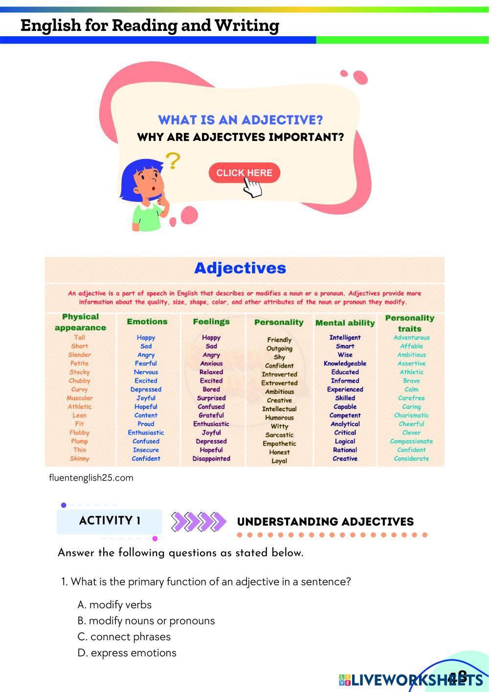 Adjectives identification exercise 1 by Teacher Muhammed Kazim Raza 3