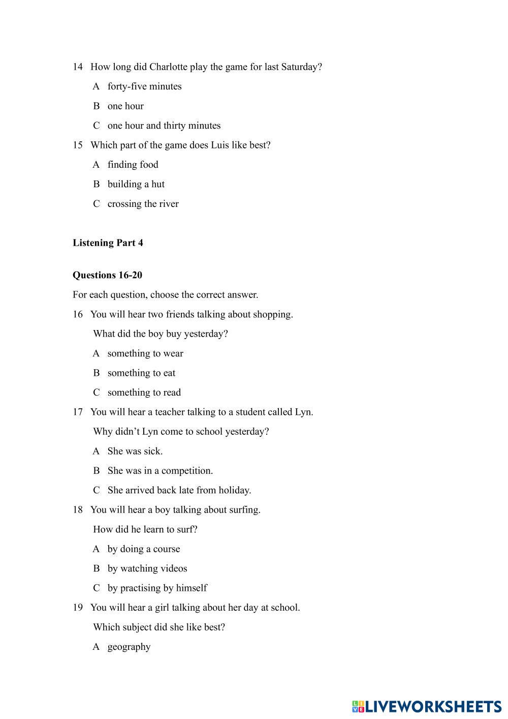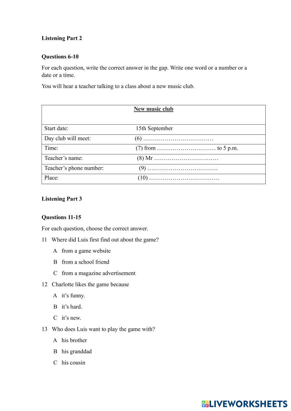 Created by gonate5455 English as a Second Language (ESL) (taxonomy_term: pre test ) Age 18+ level: A2 English Author's Instructions Pre test Ket My Google Classroom Courses × 0 classes selected (0 students total) Quick Access Select all classes (0 classes) All Classes Loading courses... Cancel Share Share to selected Course __COURSE_NAME__ __STUDENT_NAME__ (__STUDENT_EMAIL__) Pre-test Download Worksheet Validation Check my answers Emails my answers to my teacher Full name Group/level School subject Teacher's email or key code Close Submit Validating worksheet... (12) Your answers have been sent to your teacher. Good luck! OK We encountered an error submitting your answers. Please try again. OK Advertisement | Go Ad Free Created by gonate5455 English as a Second Language (ESL) (taxonomy_term: pre test ) Age 18+ level: A2 English Author's Instructions Pre test Ket