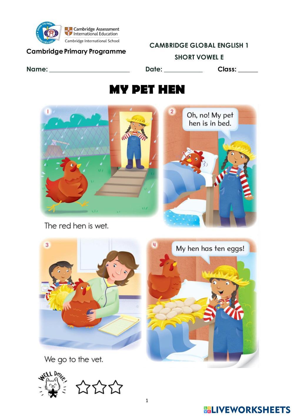 Created by cambridgeenglishteachers English as a Second Language (ESL) CGE1_Short vowel e_Short stories Age 6-13 level: 1 English Author's Instructions CGE1_Short vowel e_Short stories My Google Classroom Courses × 0 classes selected (0 students total) Quick Access Select all classes (0 classes) All Classes Loading courses... Cancel Share Share to selected Course __COURSE_NAME__ __STUDENT_NAME__ (__STUDENT_EMAIL__) CGE1_Short vowel e_Short stories Download Worksheet Validation Check my answers Emails my answers to my teacher Full name Group/level School subject Teacher's email or key code Close Submit Validating worksheet... (12) Your answers have been sent to your teacher. Good luck! OK We encountered an error submitting your answers. Please try again. OK Advertisement | Go Ad Free Created by cambridgeenglishteachers English as a Second Language (ESL) CGE1_Short vowel e_Short stories Age 6-13 level: 1 English Author's Instructions CGE1_Short vowel e_Short stories