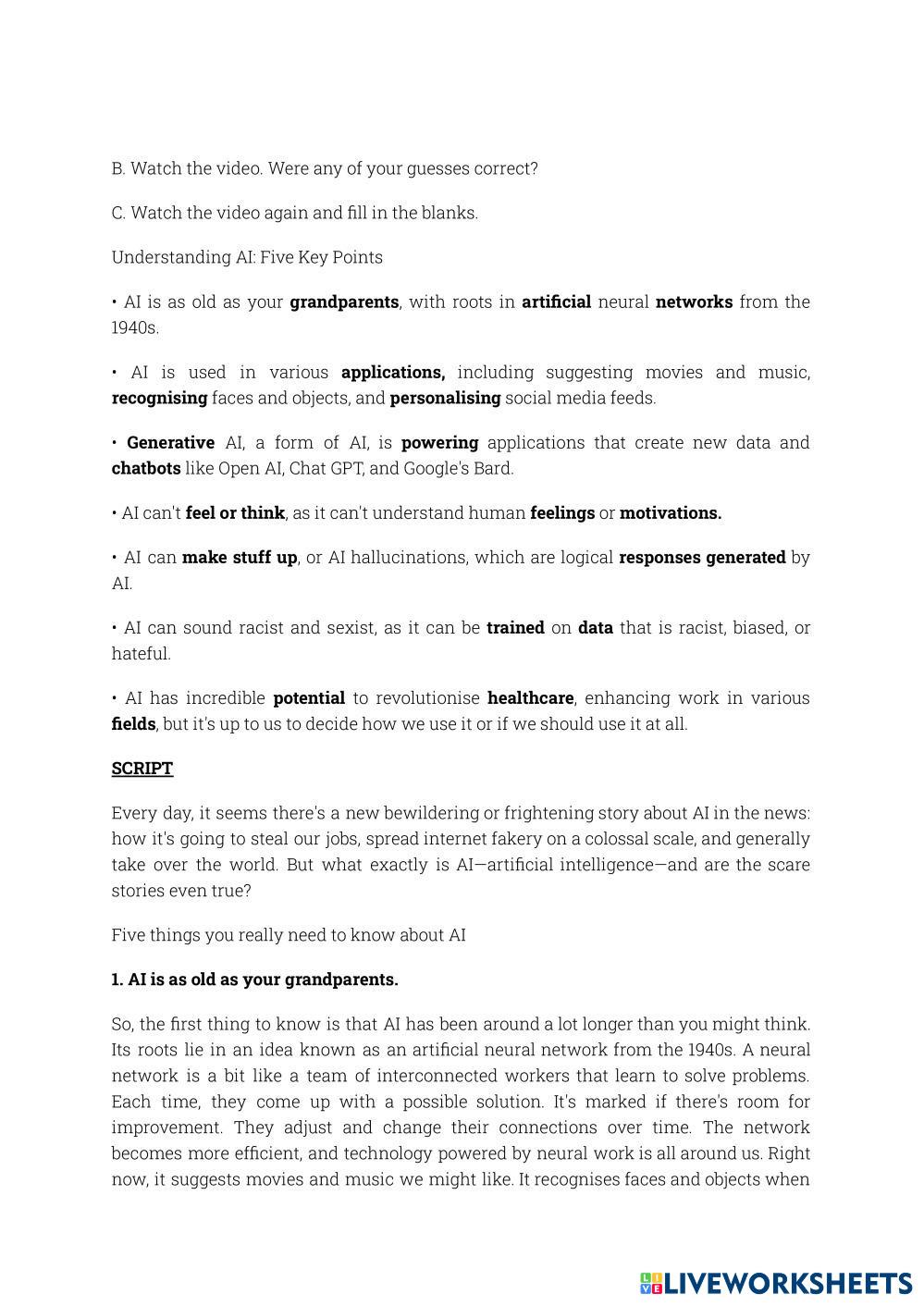 Created byLan English as a Second Language (ESL) Reading Age 10+ level: Pre-intermediate English Author's Instructions Discuss a great invention My Google Classroom Courses × 0 classes selected (0 students total) Quick Access Select all classes (0 classes) All Classes Loading courses... Cancel Share Share to selected Course __COURSE_NAME__ __STUDENT_NAME__ (__STUDENT_EMAIL__) GREAT INVENTION? Download Worksheet Validation Check my answers Emails my answers to my teacher Full name Group/level School subject Teacher's email or key code Close Submit Validating worksheet... (12) Your answers have been sent to your teacher. Good luck! OK We encountered an error submitting your answers. Please try again. OK Advertisement | Go Ad Free Created byLan English as a Second Language (ESL) Reading Age 10+ level: Pre-intermediate English Author's Instructions Discuss a great invention