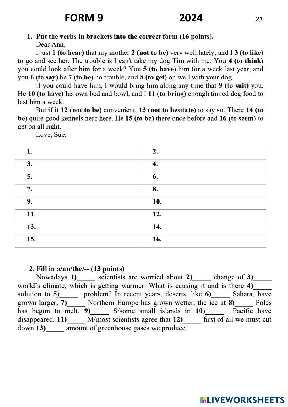 Created by Mika_tima English as a Second Language (ESL) Tests and exams Age 11+ level: 9 English Author's Instructions My Google Classroom Courses × 0 classes selected (0 students total) Quick Access Select all classes (0 classes) All Classes Loading courses... Cancel Share Share to selected Course __COURSE_NAME__ __STUDENT_NAME__ (__STUDENT_EMAIL__) Olympiad 9 2024 Могилёв Download Worksheet Validation Check my answers Emails my answers to my teacher Full name Group/level School subject Teacher's email or key code Close Submit Validating worksheet... (12) Your answers have been sent to your teacher. Good luck! OK We encountered an error submitting your answers. Please try again. OK Advertisement | Go Ad Free Created by Mika_tima English as a Second Language (ESL) Tests and exams Age 11+ level: 9 English Author's Instructions