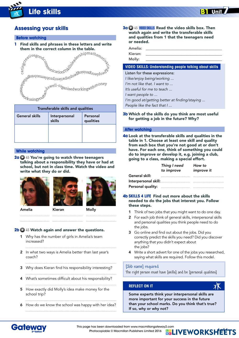 Created by Olena121416 English as a Second Language (ESL) Transferable skills Age 13-17 level: b1 English Author's Instructions My Google Classroom Courses × 0 classes selected (0 students total) Quick Access Select all classes (0 classes) All Classes Loading courses... Cancel Share Share to selected Course __COURSE_NAME__ __STUDENT_NAME__ (__STUDENT_EMAIL__) Gateway B1 Unit 7 Life Skills Worksheet Download Worksheet Validation Check my answers Emails my answers to my teacher Full name Group/level School subject Teacher's email or key code Close Submit Validating worksheet... (12) Your answers have been sent to your teacher. Good luck! OK We encountered an error submitting your answers. Please try again. OK Advertisement | Go Ad Free Created by Olena121416 English as a Second Language (ESL) Transferable skills Age 13-17 level: b1 English Author's Instructions