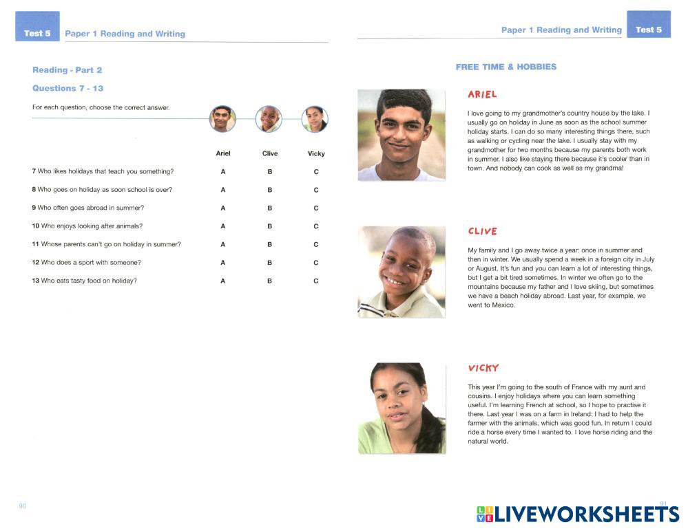 Created byNgocHue English as a Second Language (ESL) A2 key exam Age 7-17 level: A2 English Author's Instructions My Google Classroom Courses × 0 classes selected (0 students total) Quick Access Select all classes (0 classes) All Classes Loading courses... Cancel Share Share to selected Course __COURSE_NAME__ __STUDENT_NAME__ (__STUDENT_EMAIL__) Reading & Writing test 5 Download Worksheet Validation Check my answers Emails my answers to my teacher Full name Group/level School subject Teacher's email or key code Close Submit Validating worksheet... (12) Your answers have been sent to your teacher. Good luck! OK We encountered an error submitting your answers. Please try again. OK Advertisement | Go Ad Free Created byNgocHue English as a Second Language (ESL) A2 key exam Age 7-17 level: A2 English Author's Instructions