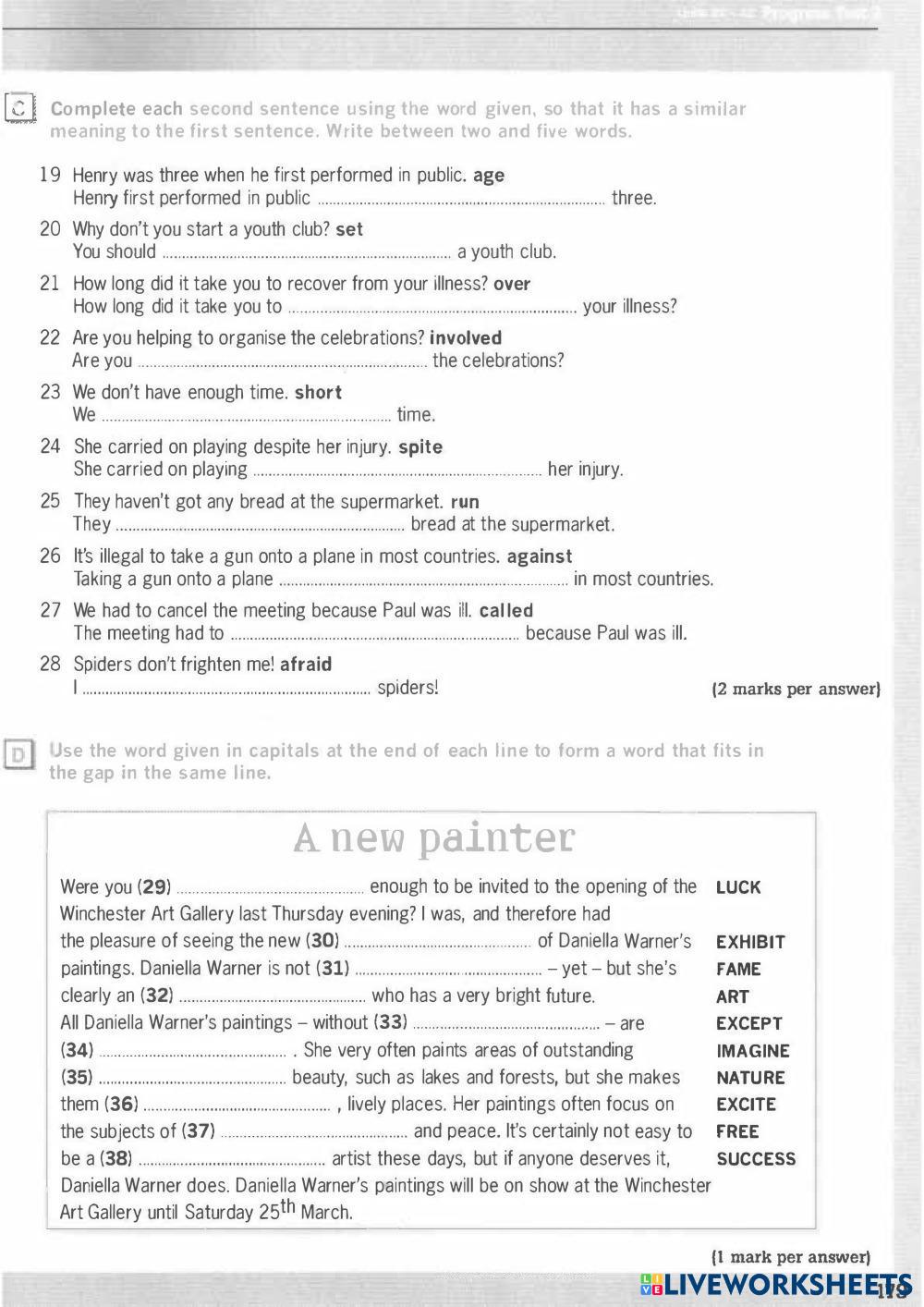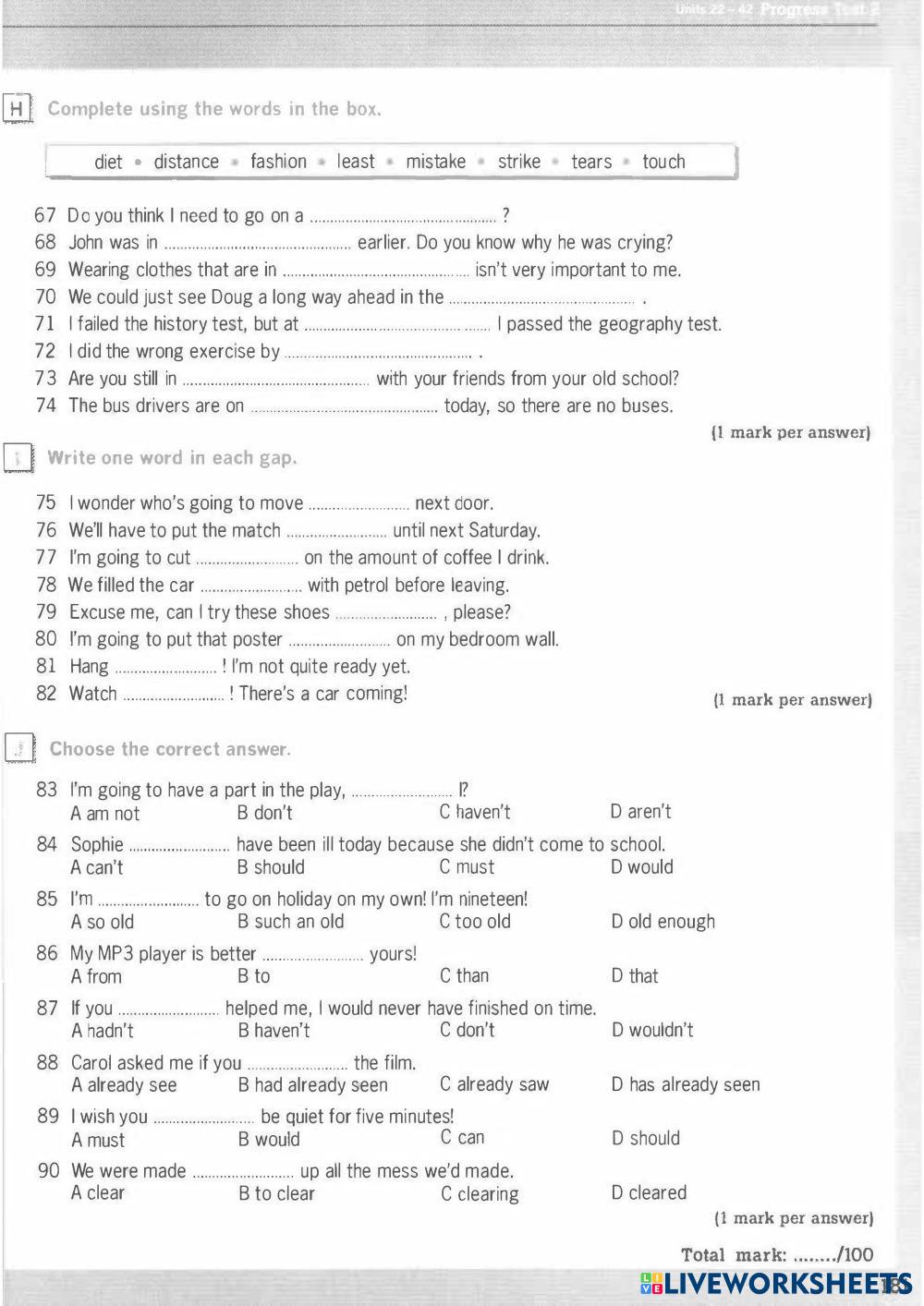 Created byZon Vu English as a Second Language (ESL) Vocabulary and Grammar Age 12+ level: B1 English Author's Instructions My Google Classroom Courses × 0 classes selected (0 students total) Quick Access Select all classes (0 classes) All Classes Loading courses... Cancel Share Share to selected Course __COURSE_NAME__ __STUDENT_NAME__ (__STUDENT_EMAIL__) Des_B1_Progress Test 2 Download Worksheet Validation Check my answers Emails my answers to my teacher Full name Group/level School subject Teacher's email or key code Close Submit Validating worksheet... (12) Your answers have been sent to your teacher. Good luck! OK We encountered an error submitting your answers. Please try again. OK Advertisement | Go Ad Free Created byZon Vu English as a Second Language (ESL) Vocabulary and Grammar Age 12+ level: B1 English Author's Instructions