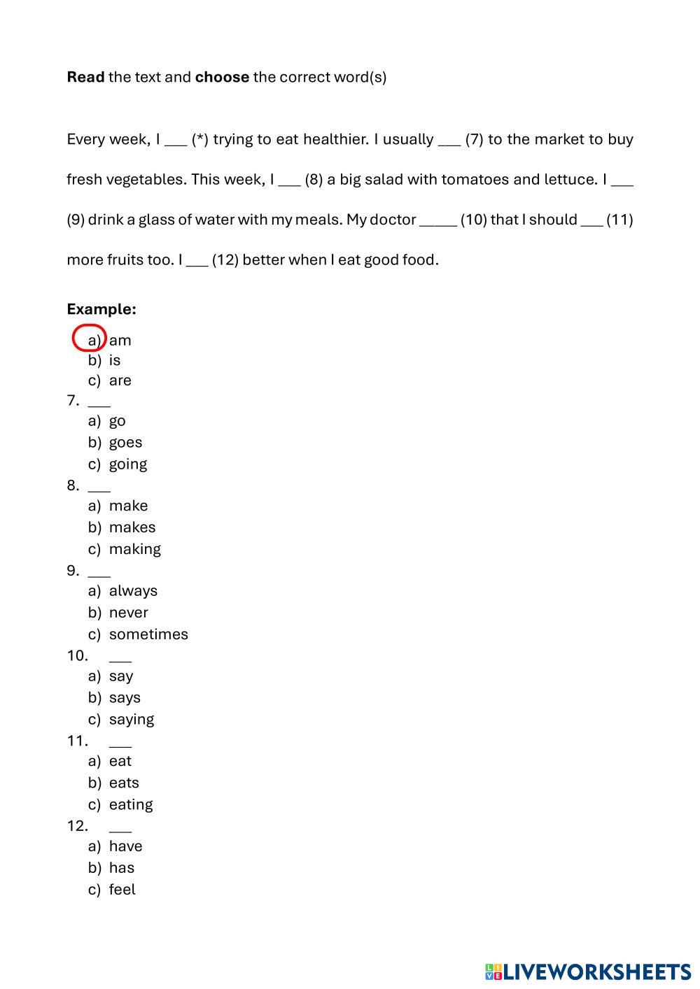 Created by hokage English as a Second Language (ESL) Reading Age 6-18 level: beginners English Author's Instructions My Google Classroom Courses × 0 classes selected (0 students total) Quick Access Select all classes (0 classes) All Classes Loading courses... Cancel Share Share to selected Course __COURSE_NAME__ __STUDENT_NAME__ (__STUDENT_EMAIL__) Term 3 Mock Exam1 Download Worksheet Validation Check my answers Emails my answers to my teacher Full name Group/level School subject Teacher's email or key code Close Submit Validating worksheet... (12) Your answers have been sent to your teacher. Good luck! OK We encountered an error submitting your answers. Please try again. OK Advertisement | Go Ad Free Created by hokage English as a Second Language (ESL) Reading Age 6-18 level: beginners English Author's Instructions