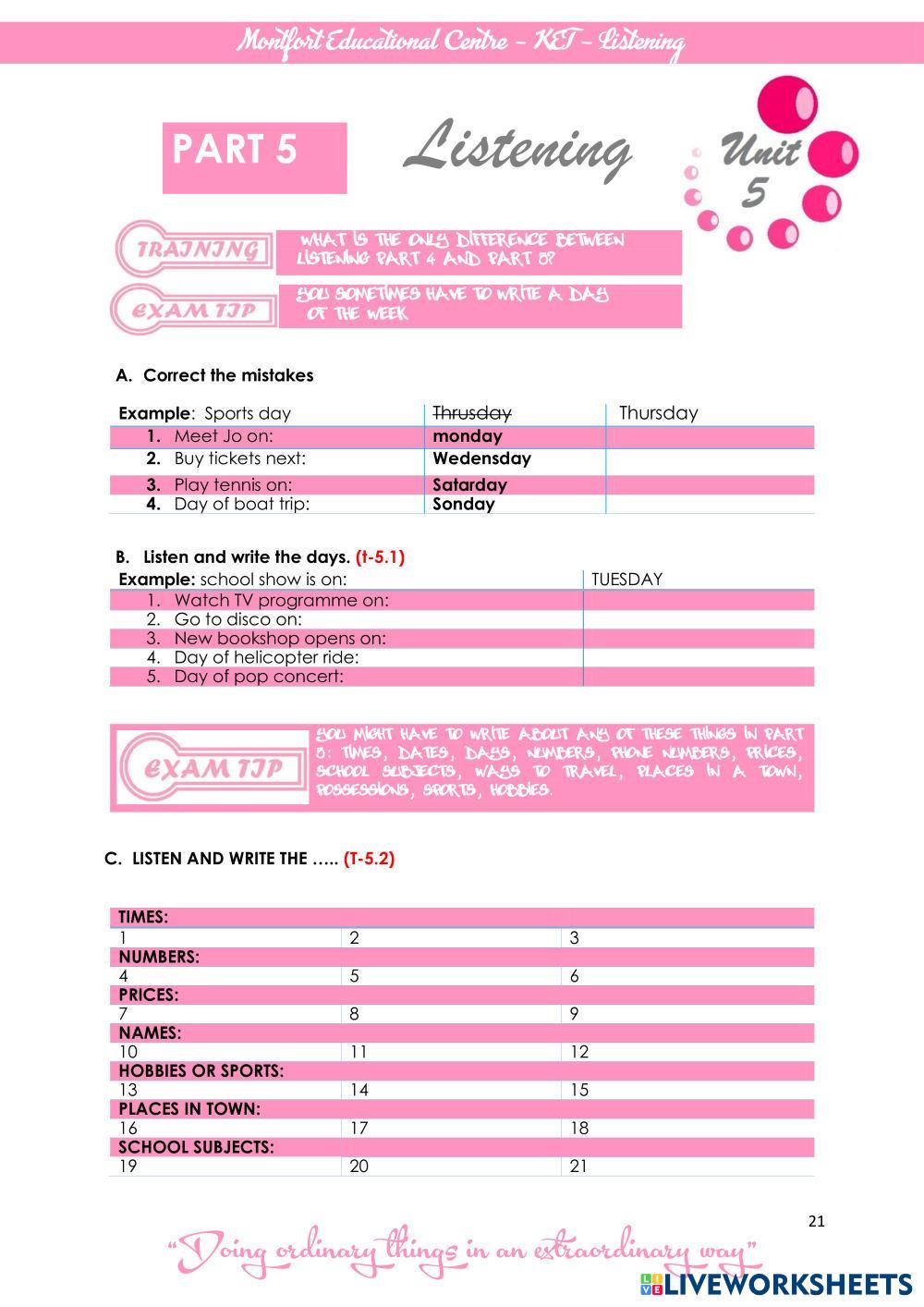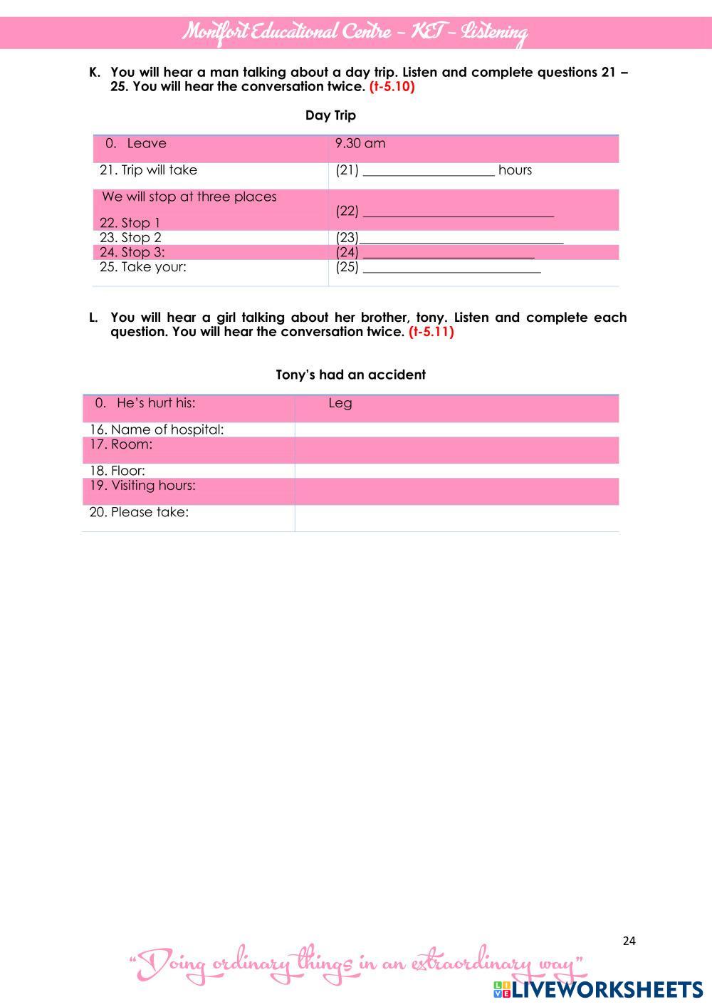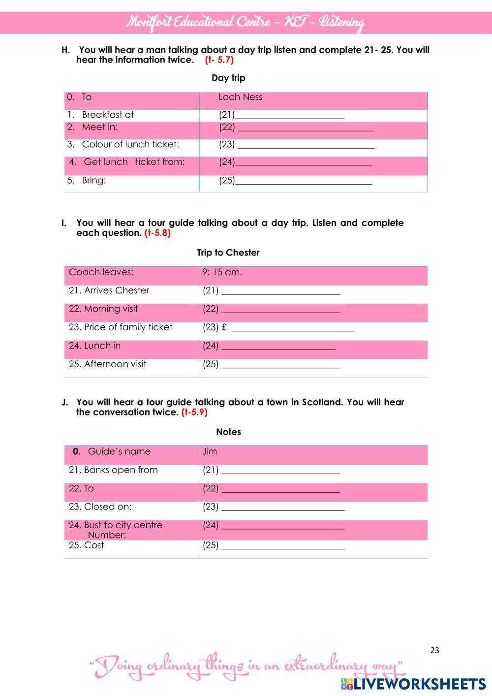 Created byMontfort Educational School English as a Second Language (ESL) Listening comprehension Age 3+ level: ALL English Author's Instructions My Google Classroom Courses × 0 classes selected (0 students total) Quick Access Select all classes (0 classes) All Classes Loading courses... Cancel Share Share to selected Course __COURSE_NAME__ __STUDENT_NAME__ (__STUDENT_EMAIL__) KET LISTENING UNIT 5 Download Worksheet Validation Check my answers Emails my answers to my teacher Full name Group/level School subject Teacher's email or key code Close Submit Validating worksheet... (12) Your answers have been sent to your teacher. Good luck! OK We encountered an error submitting your answers. Please try again. OK Advertisement | Go Ad Free Created byMontfort Educational School English as a Second Language (ESL) Listening comprehension Age 3+ level: ALL English Author's Instructions
